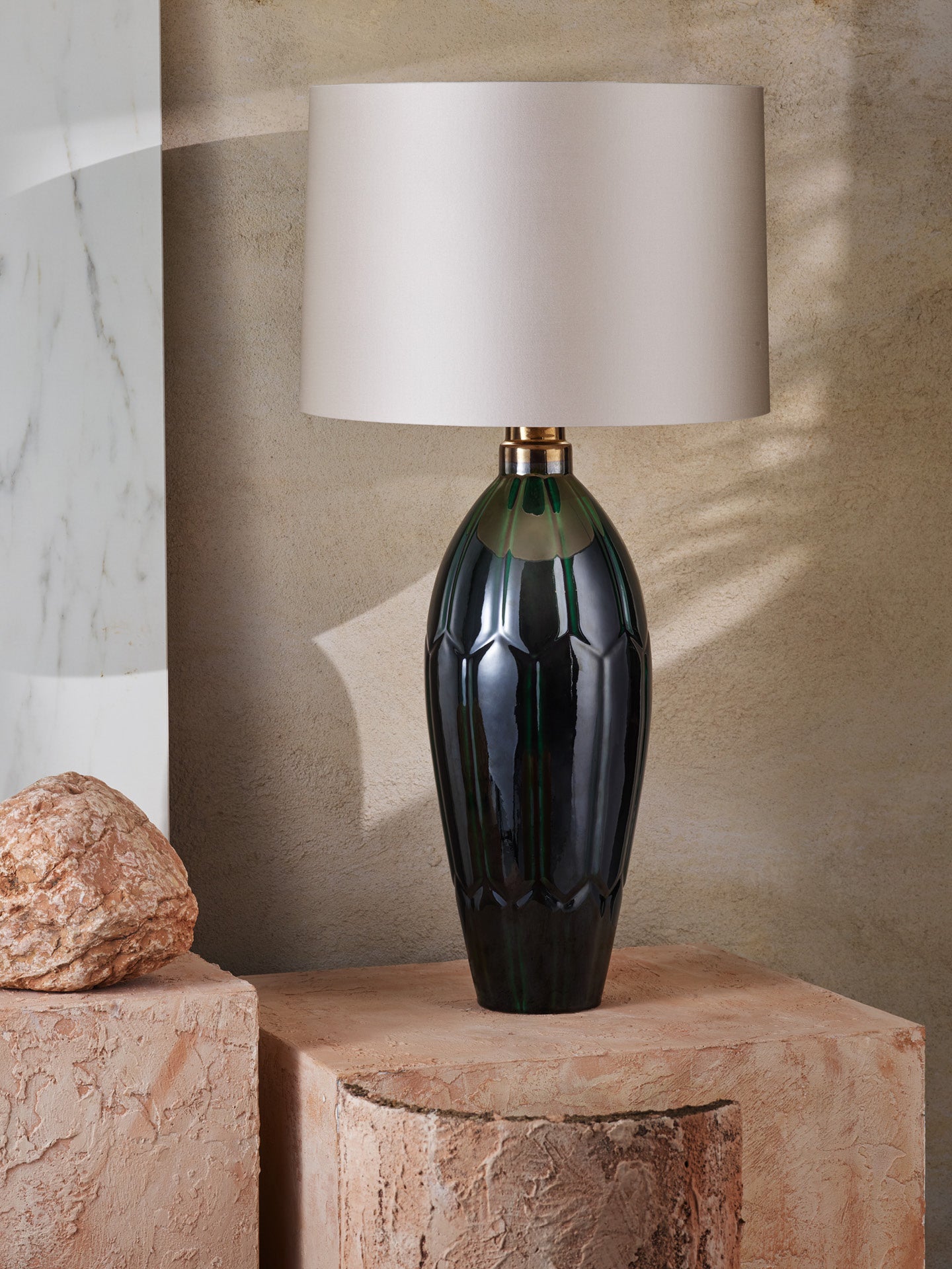 Creating a statement in any interior, the Agave table lamp offers rich verdant green captured in a tall and sleek ceramic. The ceramic glaze allows for natural variations in colour, allowing each products individuality to stand true.