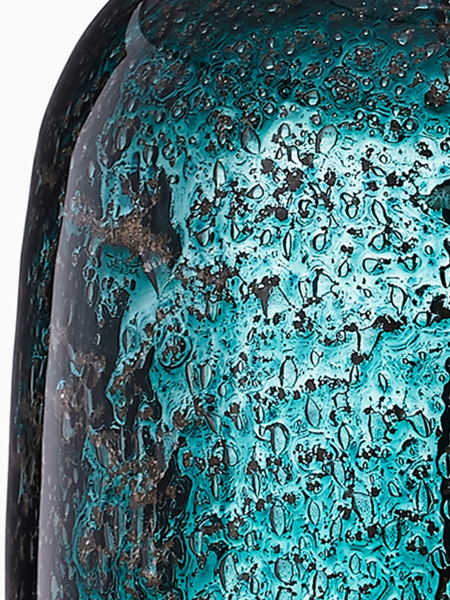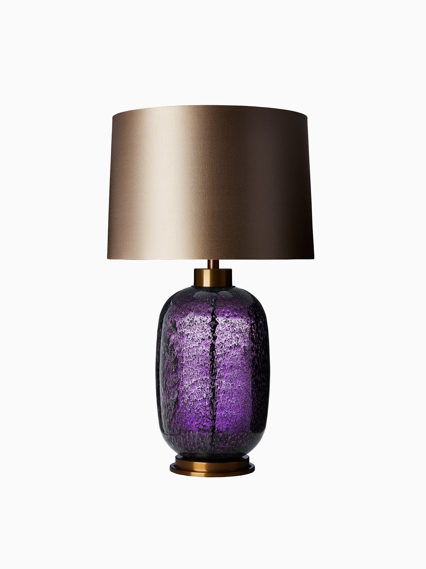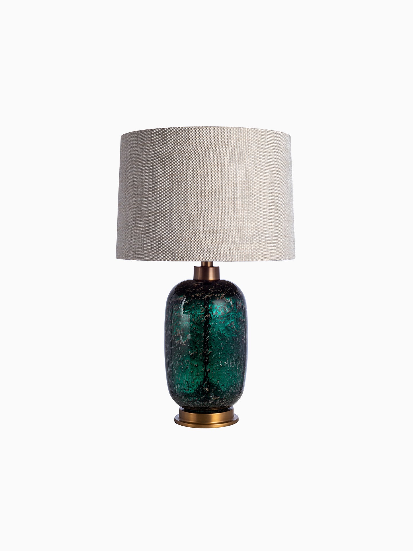 Our Amelia Table Lamp is expertly hand-crafted with volcanic frit glass that is complemented with antique brass detailing.