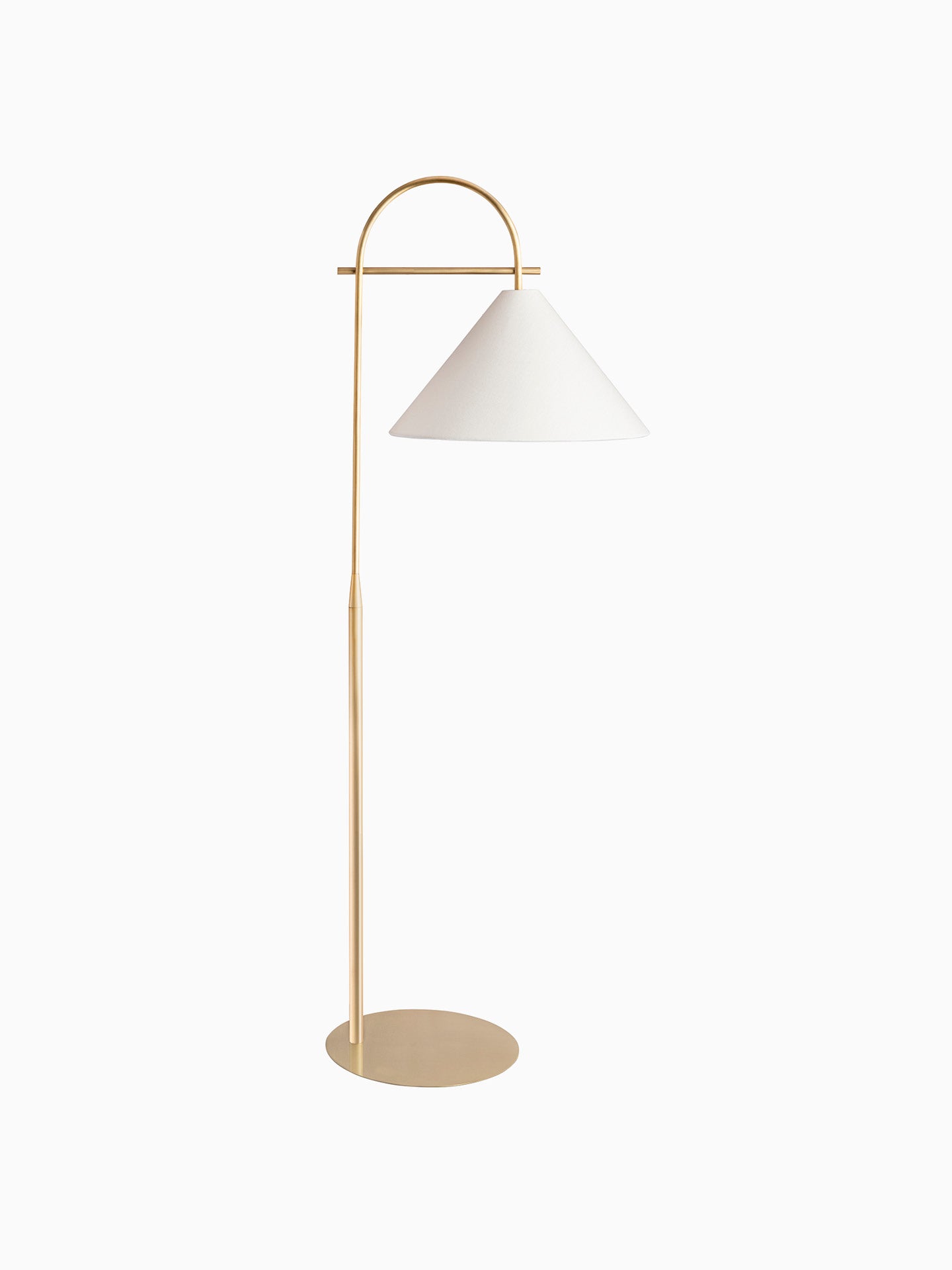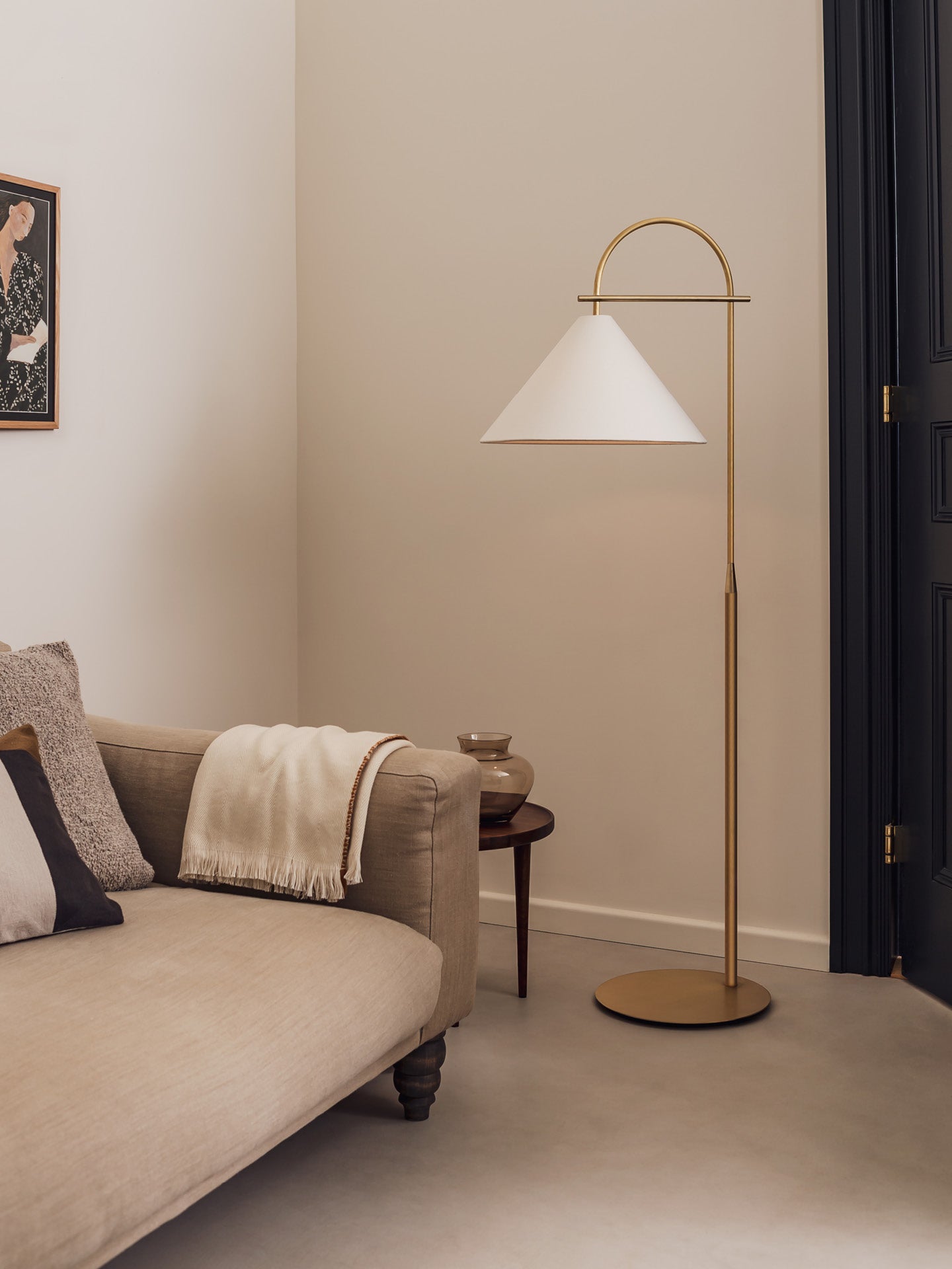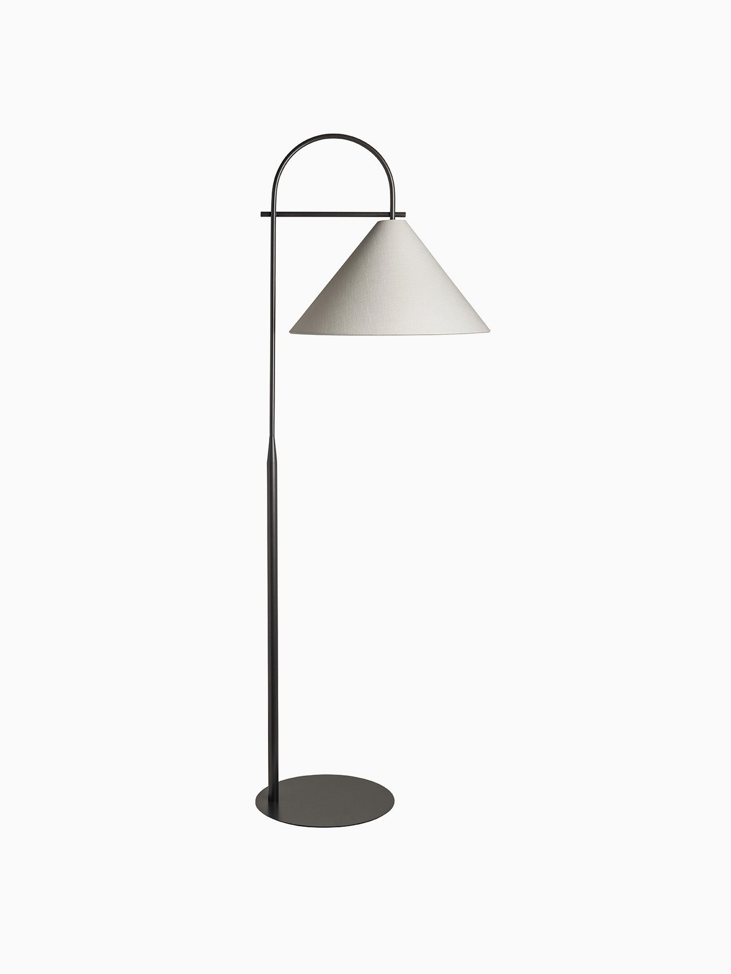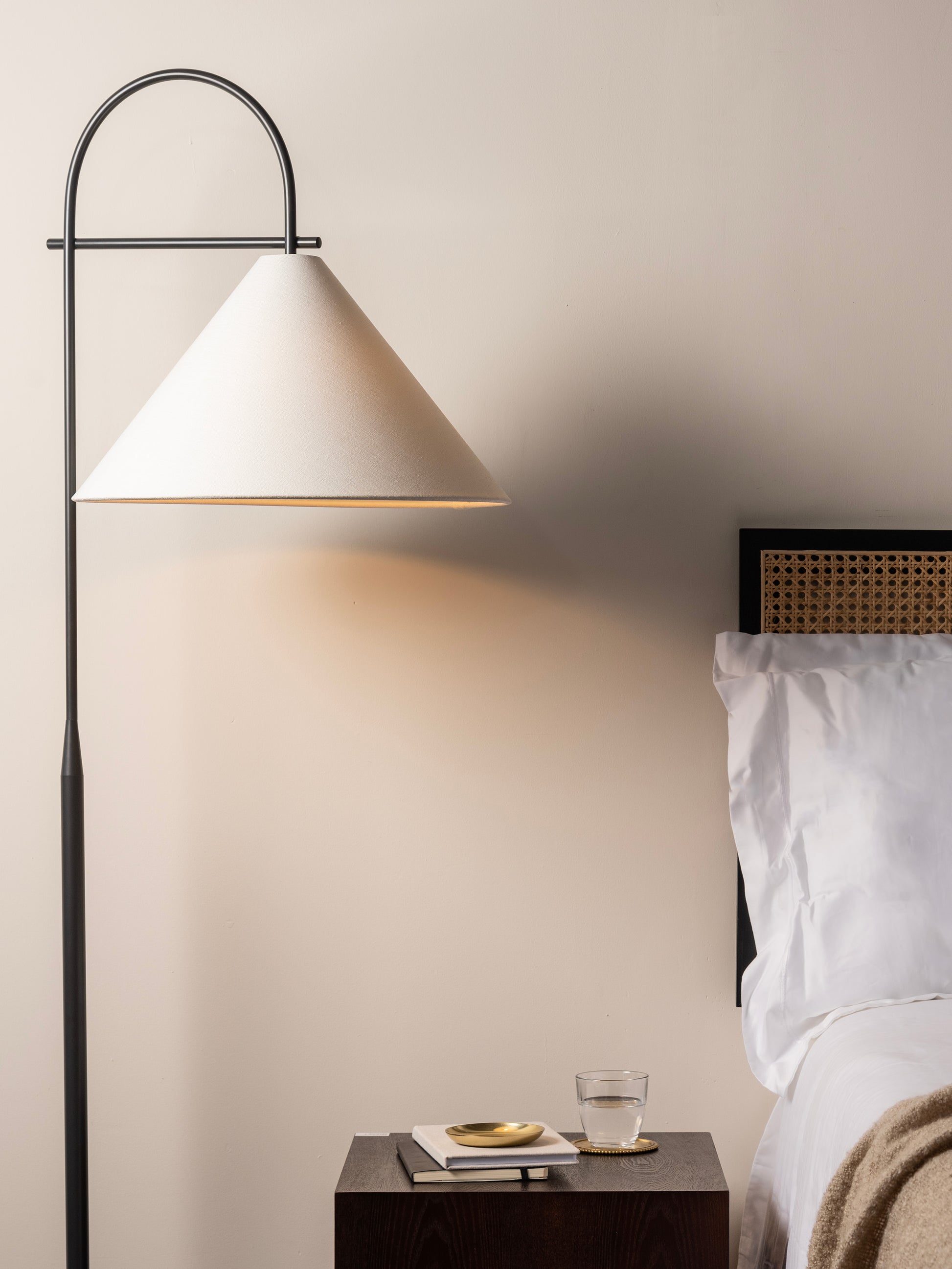 Our Arlo floor lamp is simple and modern in design. The cross section detail bridges the arch between the stepped stem and elegant conical lampshade. Completing its collection, the design is also available as a table lamp and wall light.