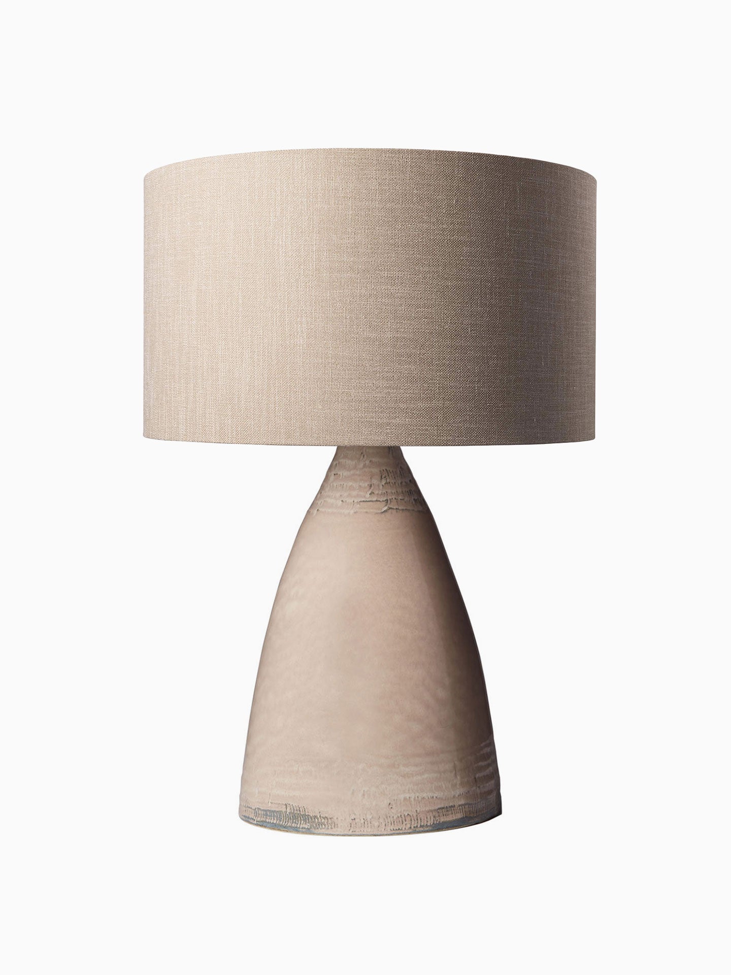 The Bonaire table lamp features a textured ceramic base with variations that give it a rustic, artisanal quality. The matte finish on the base adds to its earthy, organic feel, while the neutral tones allow it to blend seamlessly into a variety of interior styles.