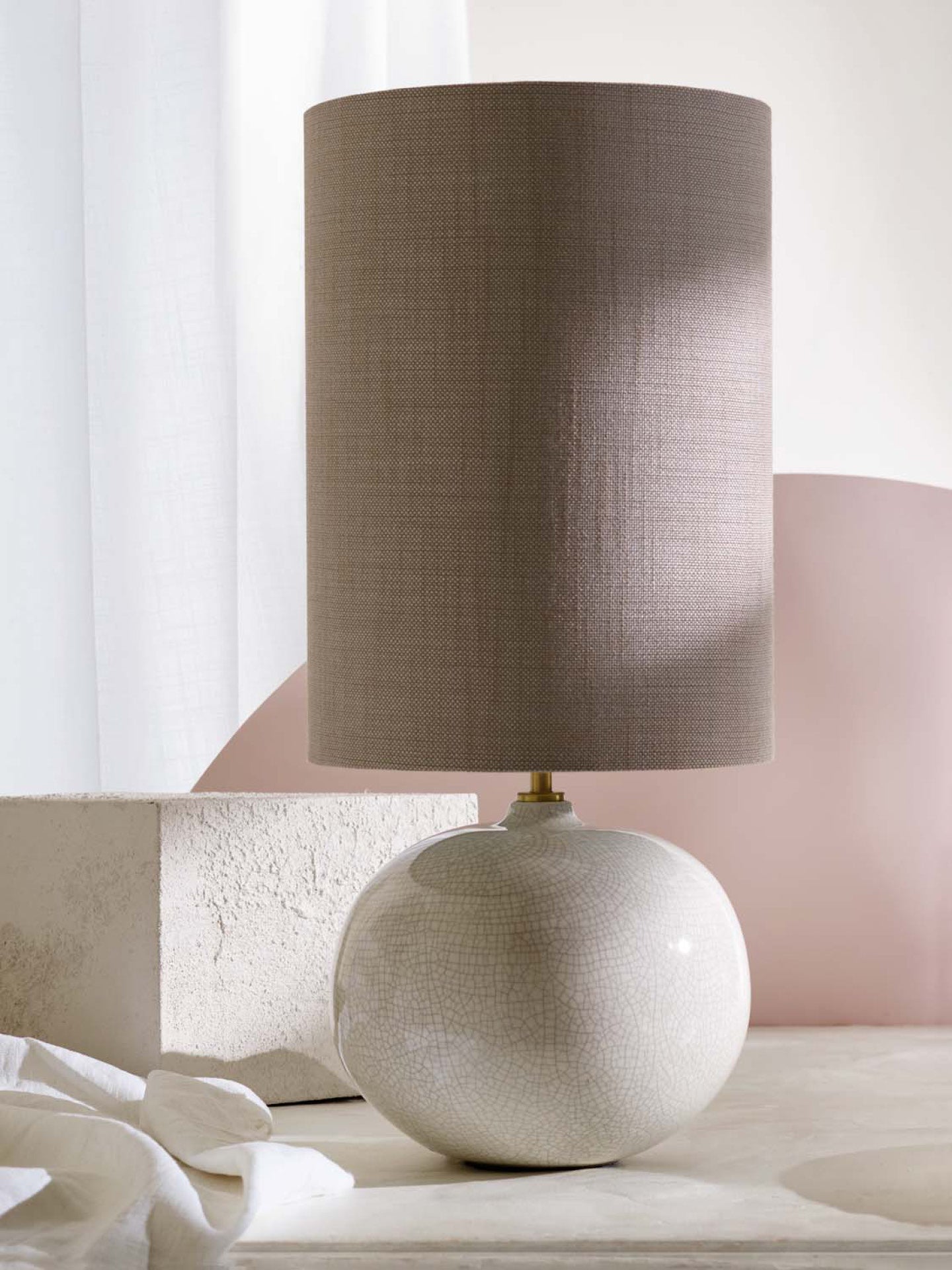 A petite rounded base with a subtle crackle glaze finish, our Camellia table lamp captures the beauty of the finer details found in nature, reflecting the delicate veins running through petals and leaves.