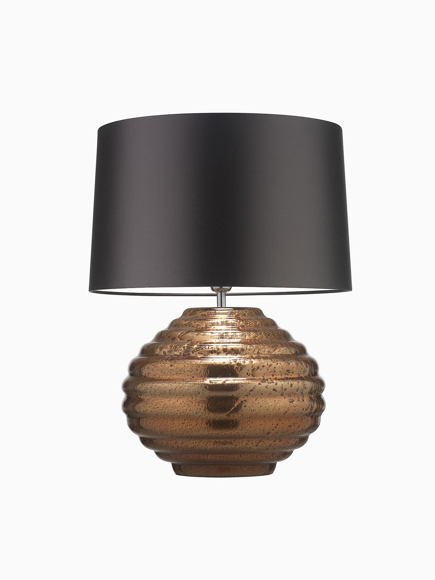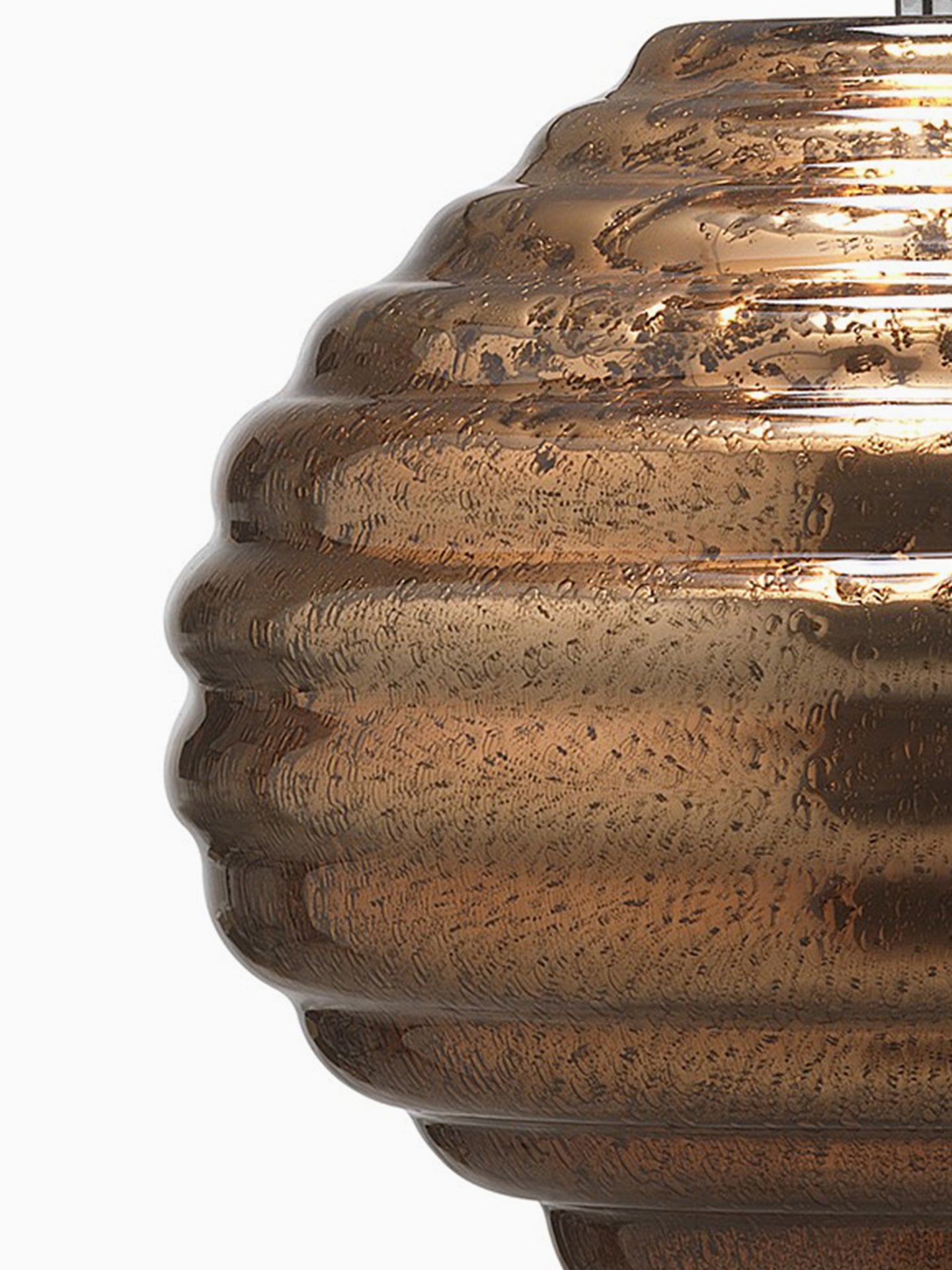 The shape of the Colmea lamp is achieved by blowing glass in a turned mould, and finishing with a rich metal glaze application. The Gold tone, surface texture and metallic quality give this design a luxurious and glamorous finish.