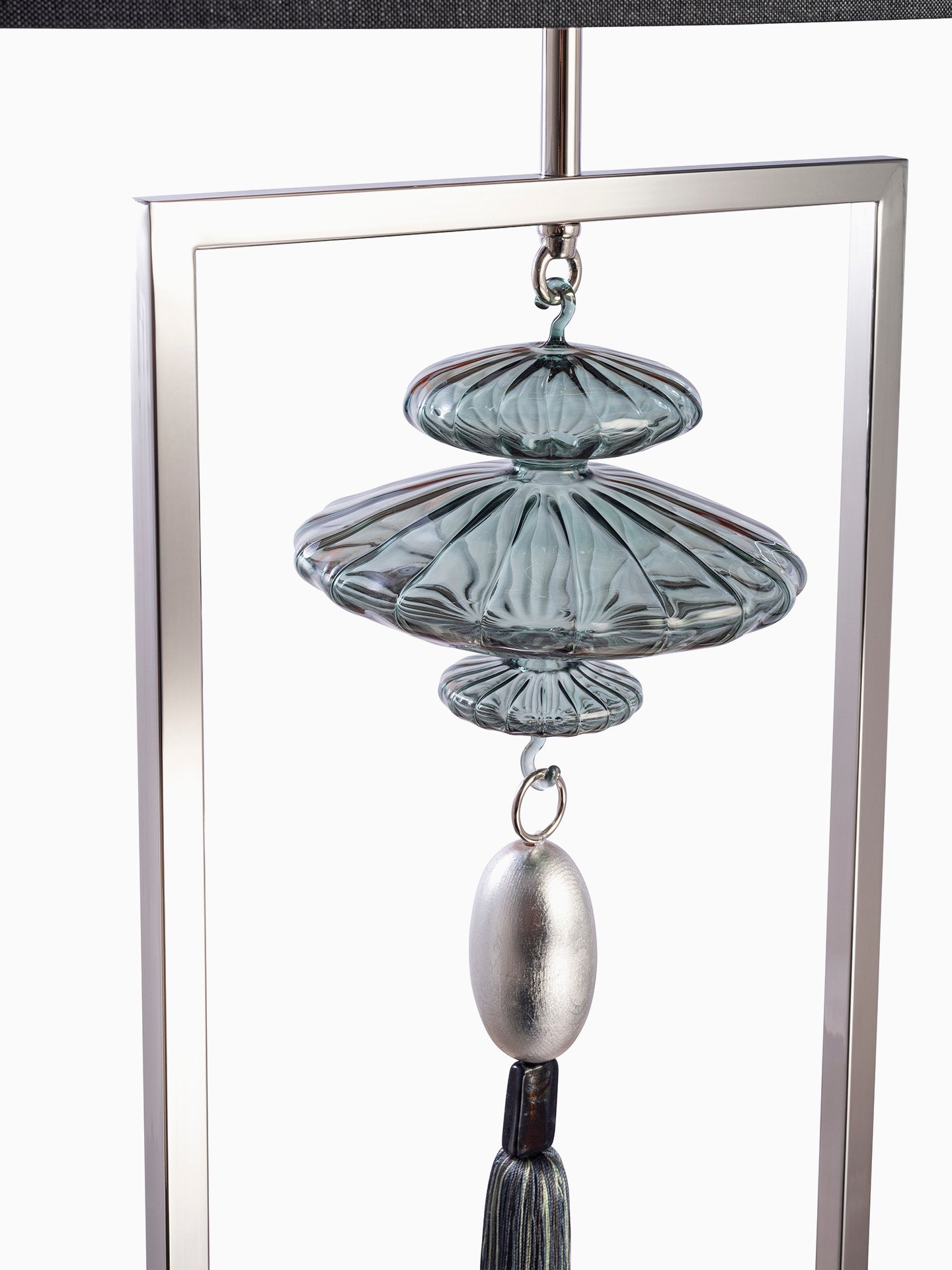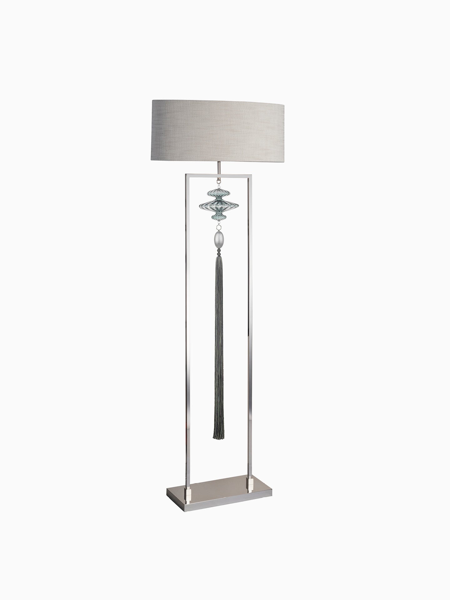 Our Constance range features a simple yet elegant structured metal frame with fluted glass and a beaded decorative tassel. Available in table and floor lamp options.