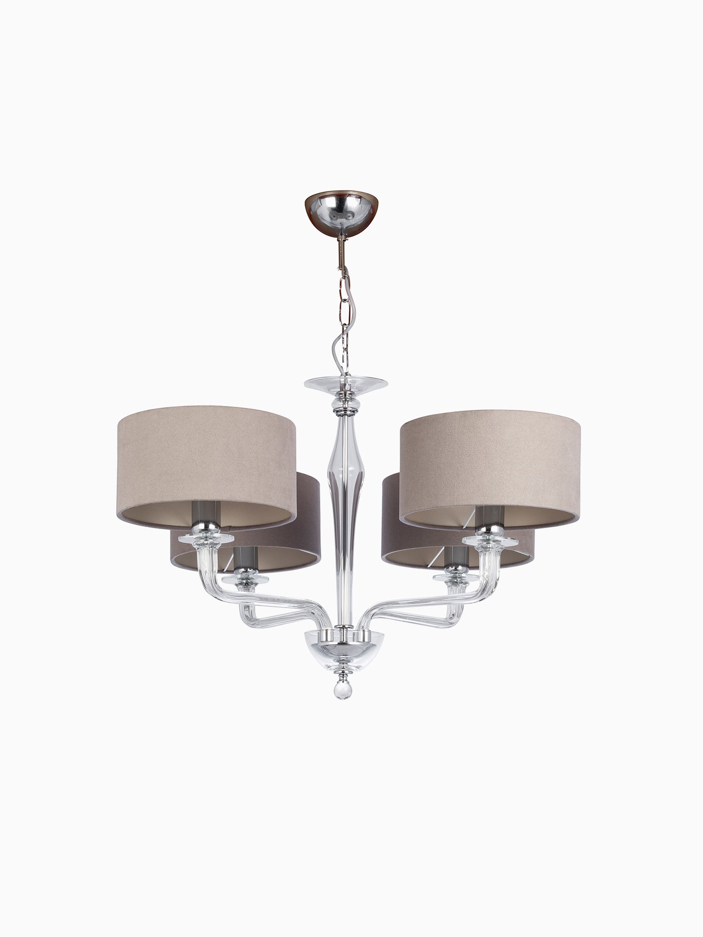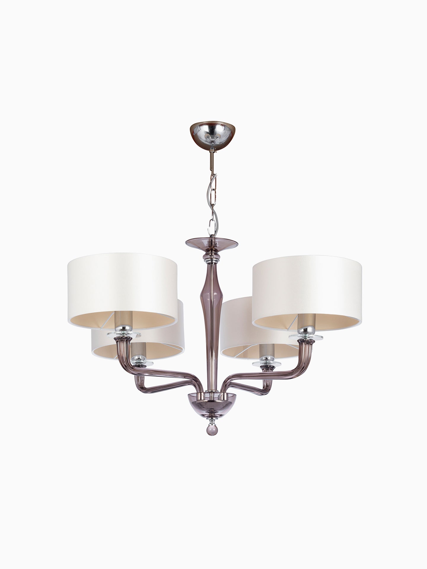 The Czarina chandeliers feature decorative flowing glass arms and a curved center body. Available in Smoke, Gold or Clear glass finishes with four, six or eight arm options.