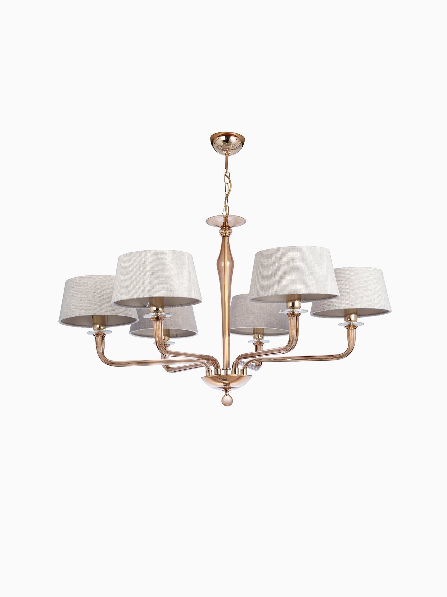 The Czarina chandeliers feature decorative flowing glass arms and a curved center body. Available in Gold or Clear glass finishes with four, six or eight arm options.