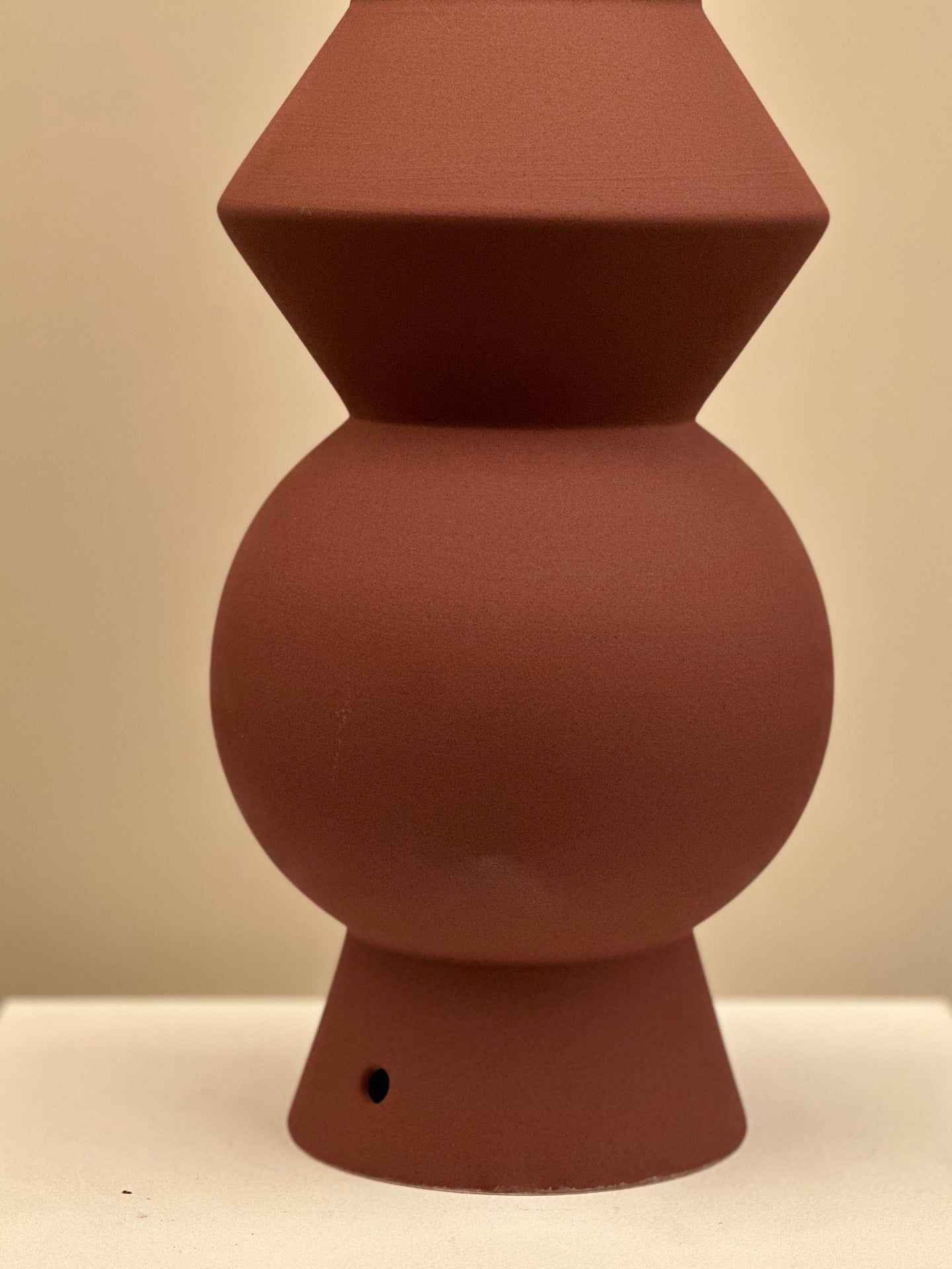 Bring the natural beauty of the outdoors into your home with Fero. The playful, angular shape and rich sunset hue of this matt ceramic table lamp will lend a luxurious warmth to a side table or console and add instant drama to your space.