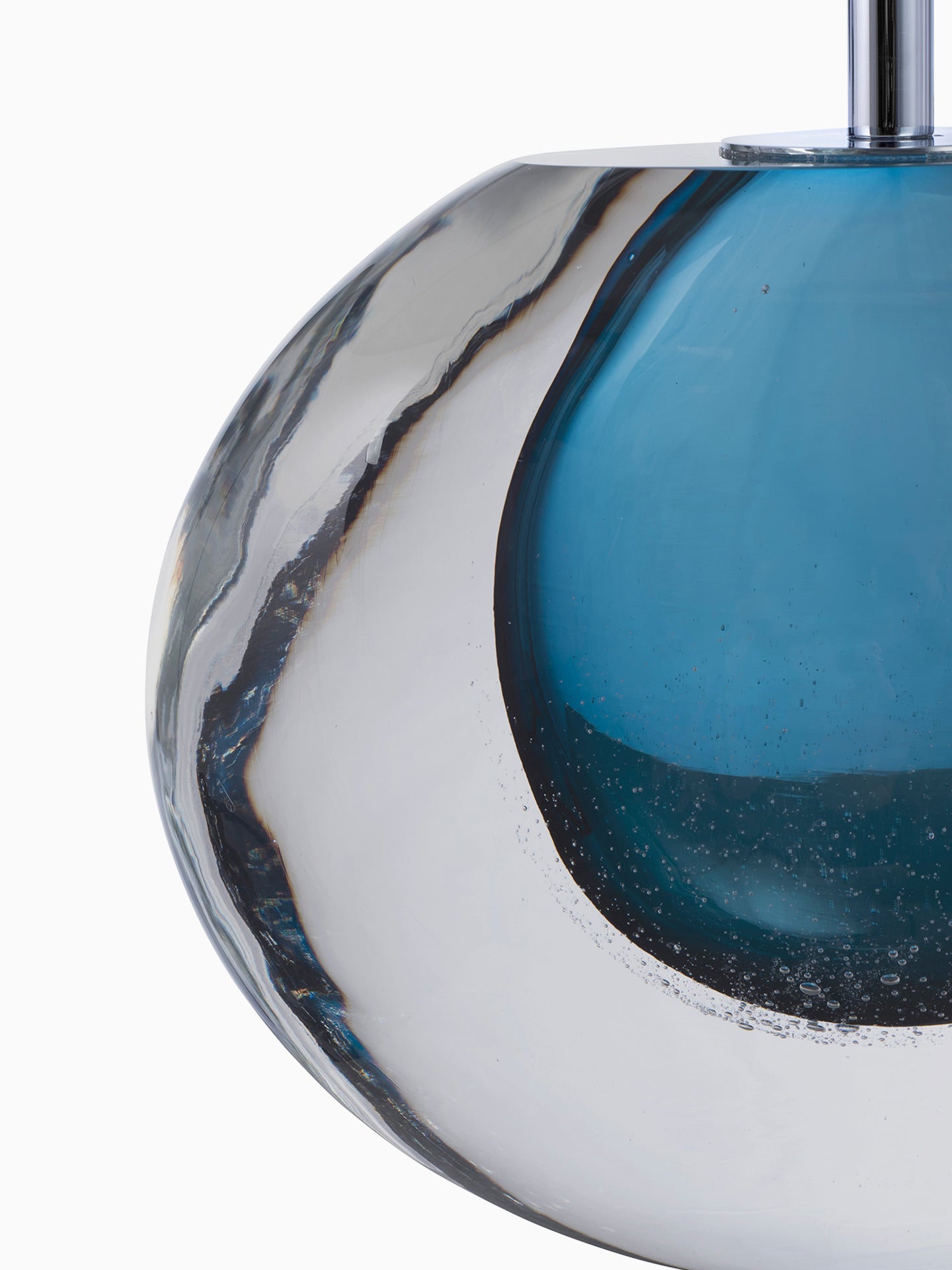 The Gaia lamp is hand blown by master craftsmen. A drop of intense colour gives this petite lamp a polished elegant feel. This design is individually crafted and will vary from piece to piece.
