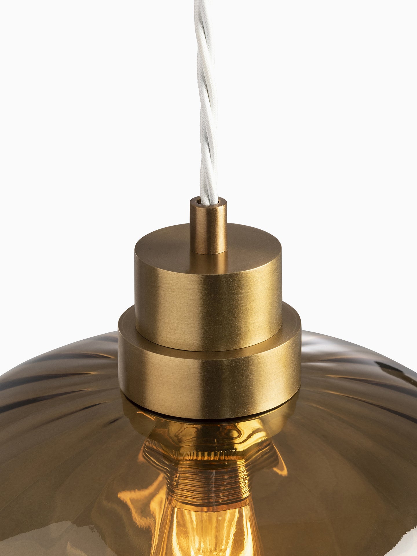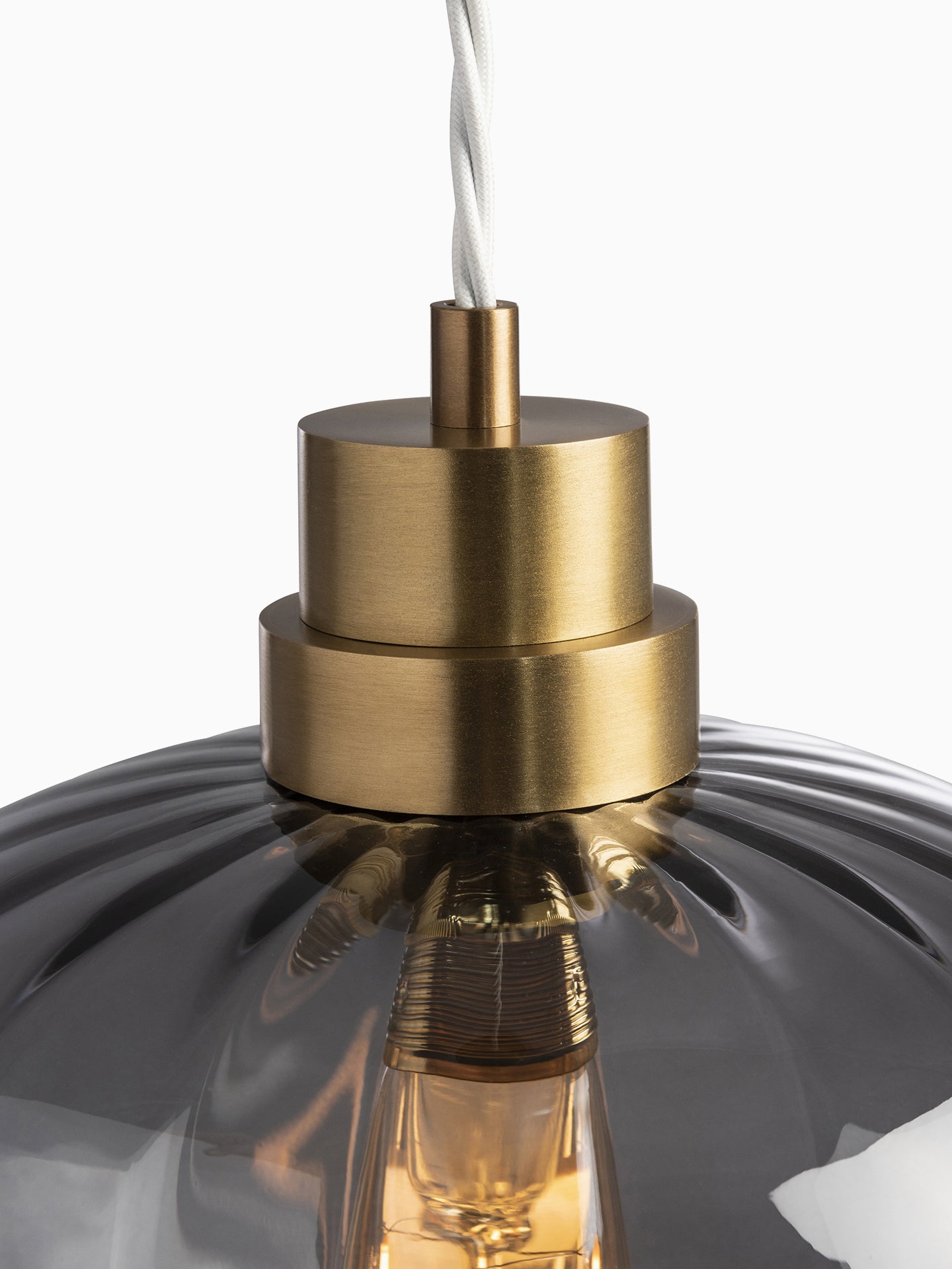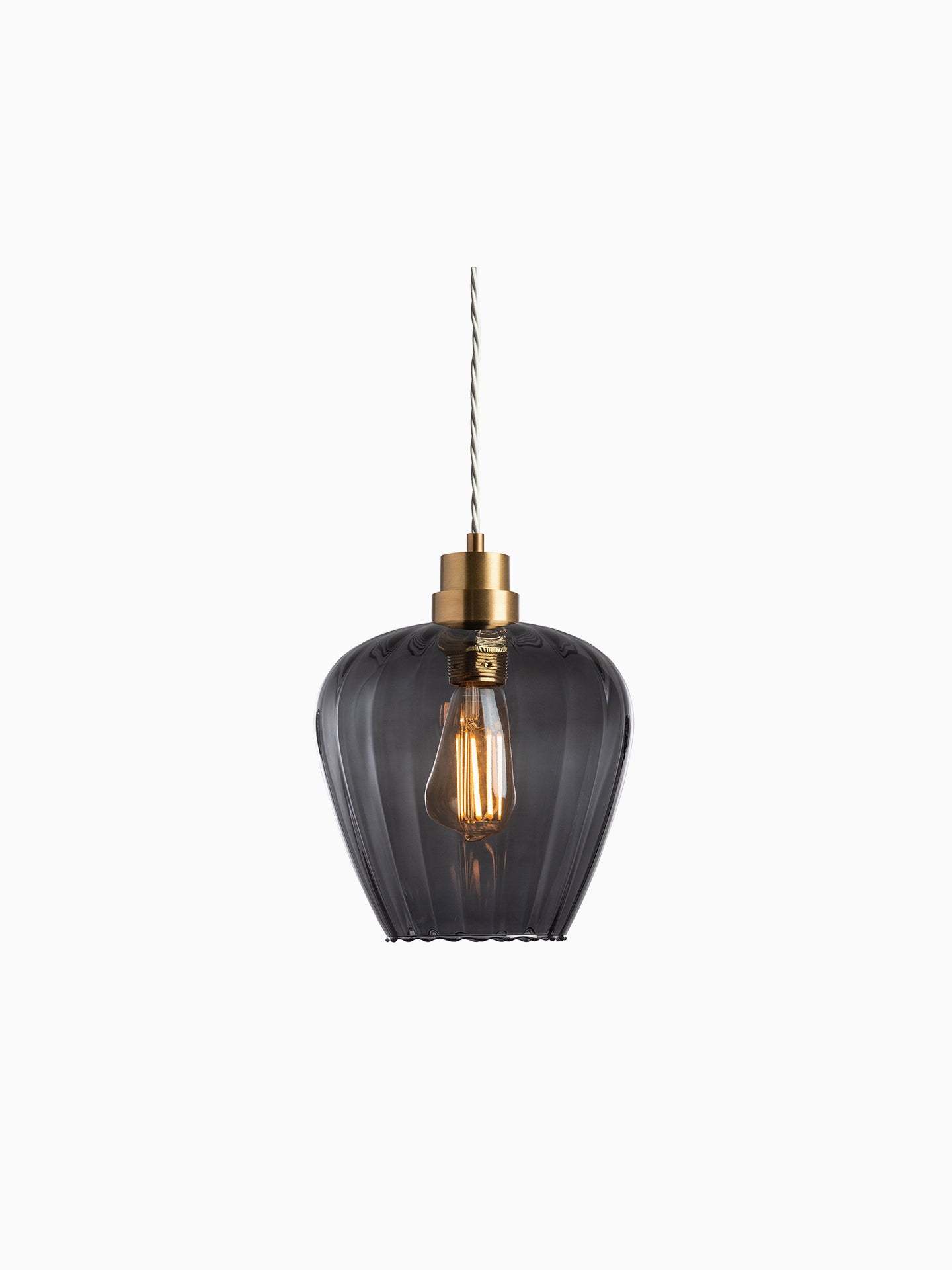 Elegant in its jewel like appearance, our Giselle pendant is finished in antique brass. Its graceful glass shade features smooth scalloped edges that beautifully refract the light.