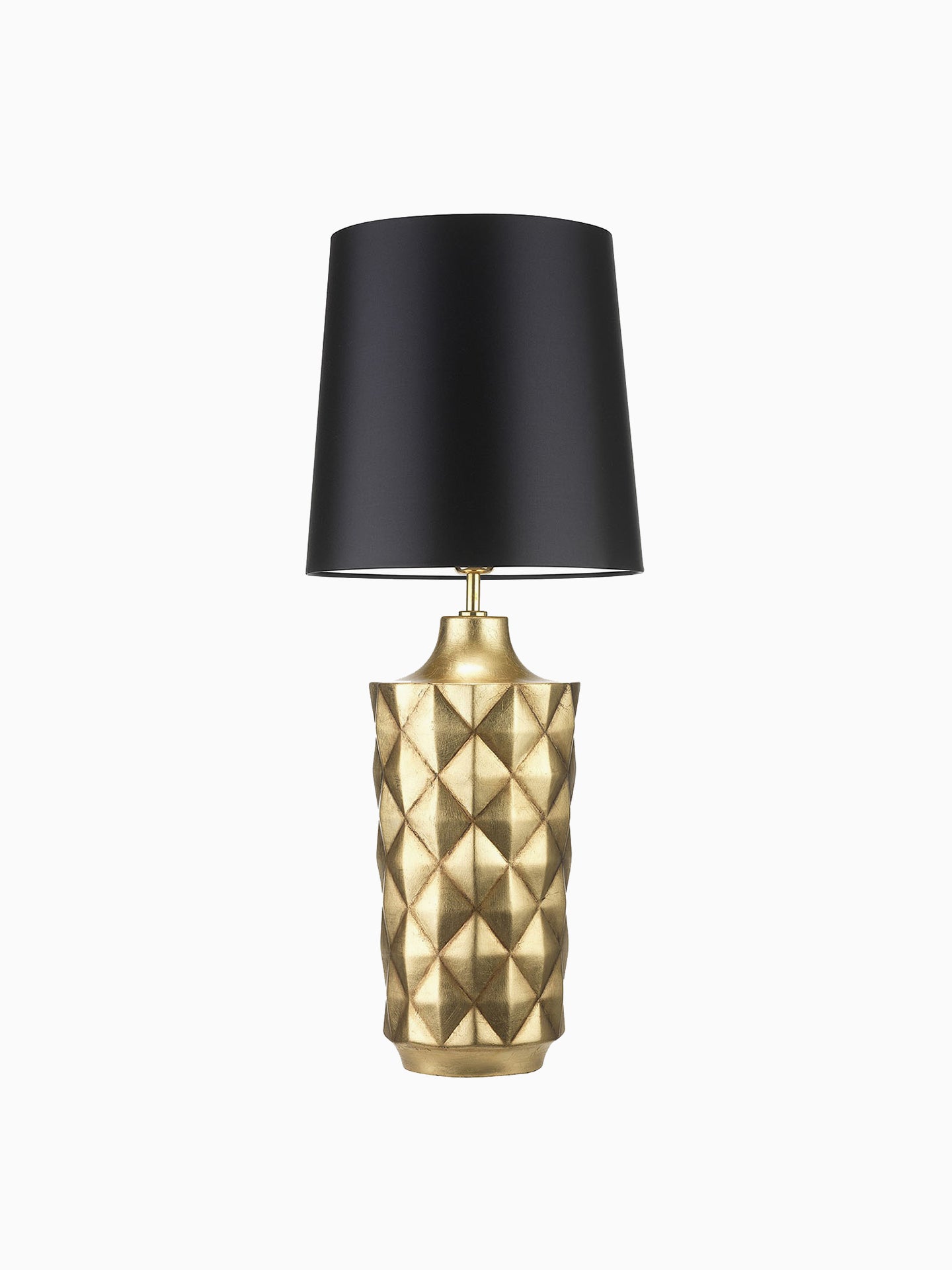 The Herzog table lamp features a textured ceramic base with a striking geometric pattern. Paired with a tall french drum shade, it brings a bold and refined presence to any interior.