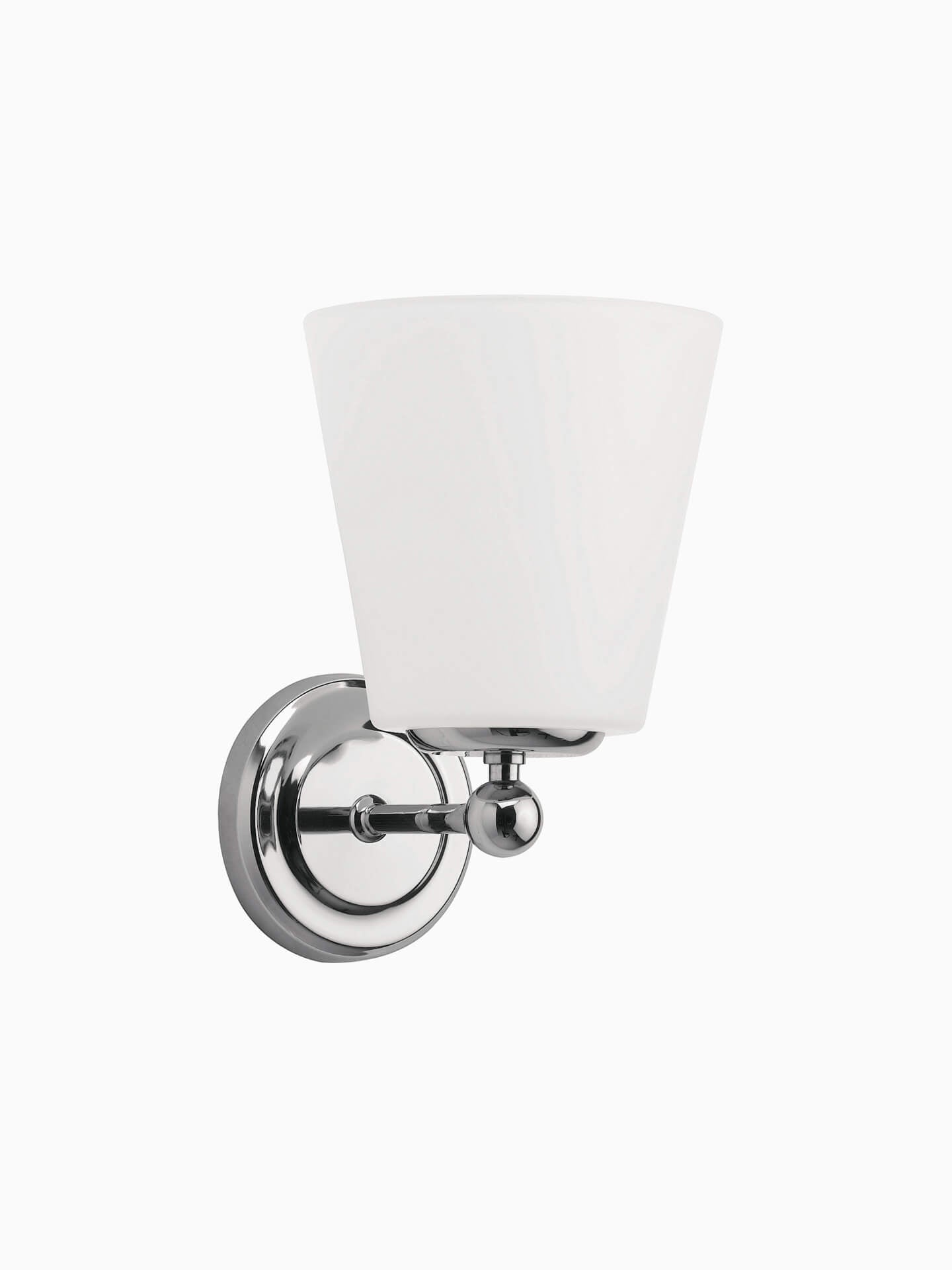 Our Ines Wall Light is perfectly petite with simple chrome metalwork and a frosted glass lampshade. Fully IP44 rated suitable for use in bathrooms.