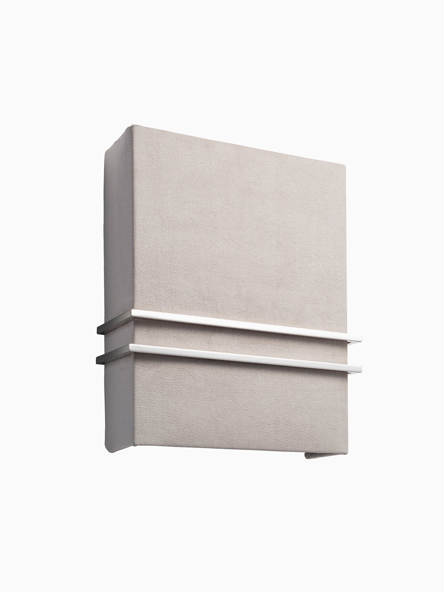Drawing on art deco design influence, the Langham wall light features a neutral rectangular shade complemented by bold metal frame detailing.