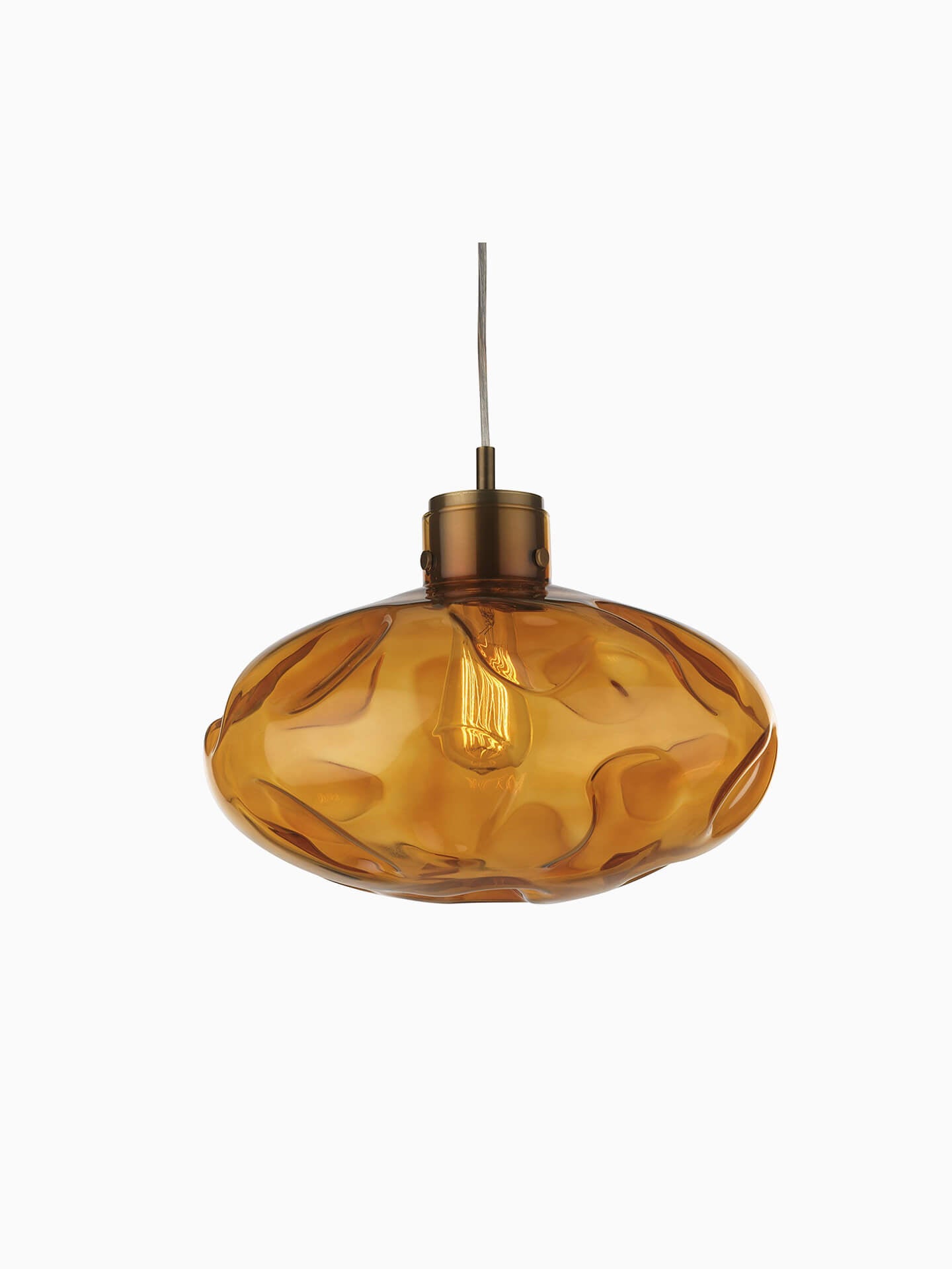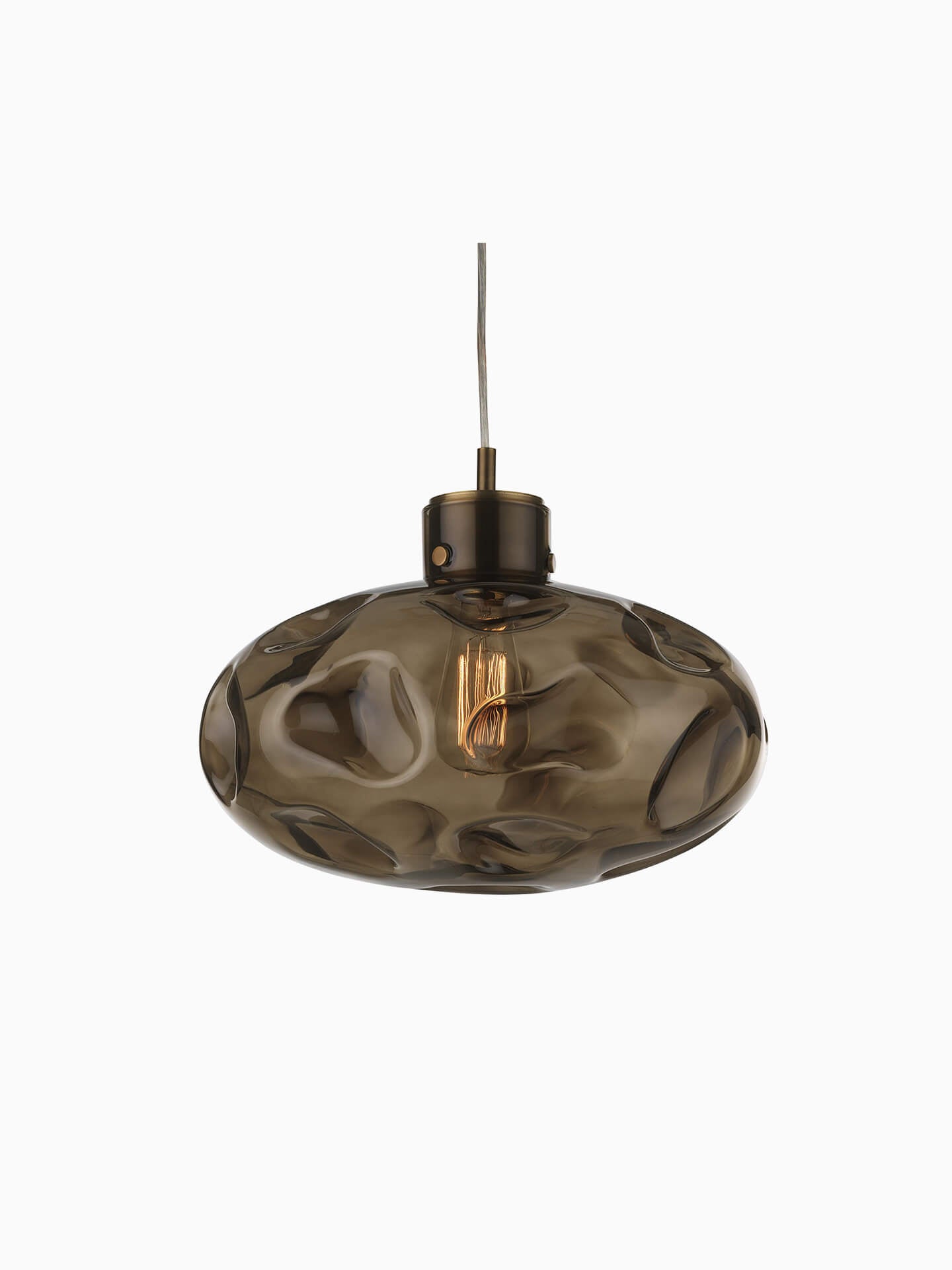 Expertly handcrafted from borosilicate glass, each Leoni Pendant is formed organically to create the unique glass dimples. Available in Amber and Smoke.