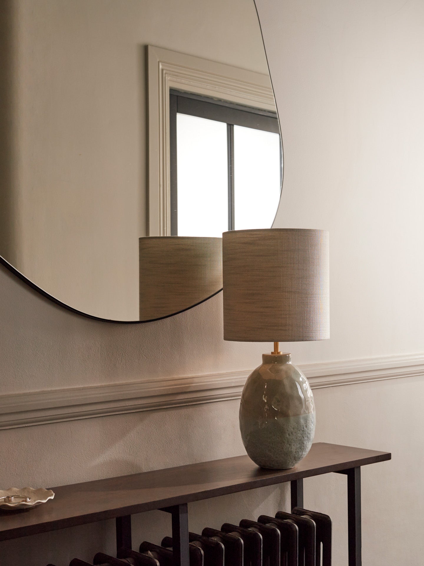 Drawing inspiration from the serene colours and movement of the ocean, our Mira table lamp transforms the mood of a space, creating instant tranquility. The uneven ceramic surface represents movement, whilst the unique reactive glaze reflects the multifaceted characteristics of water.