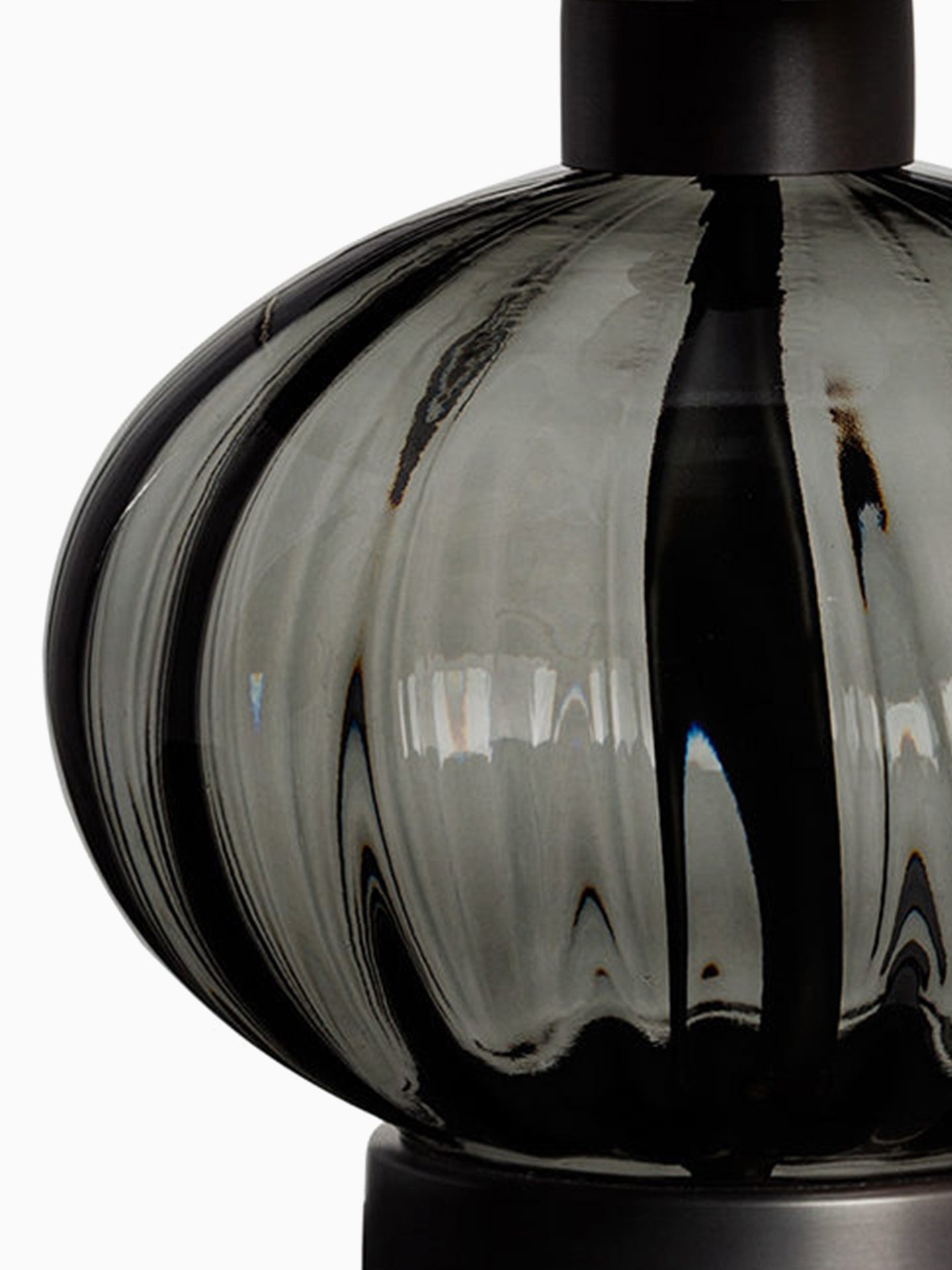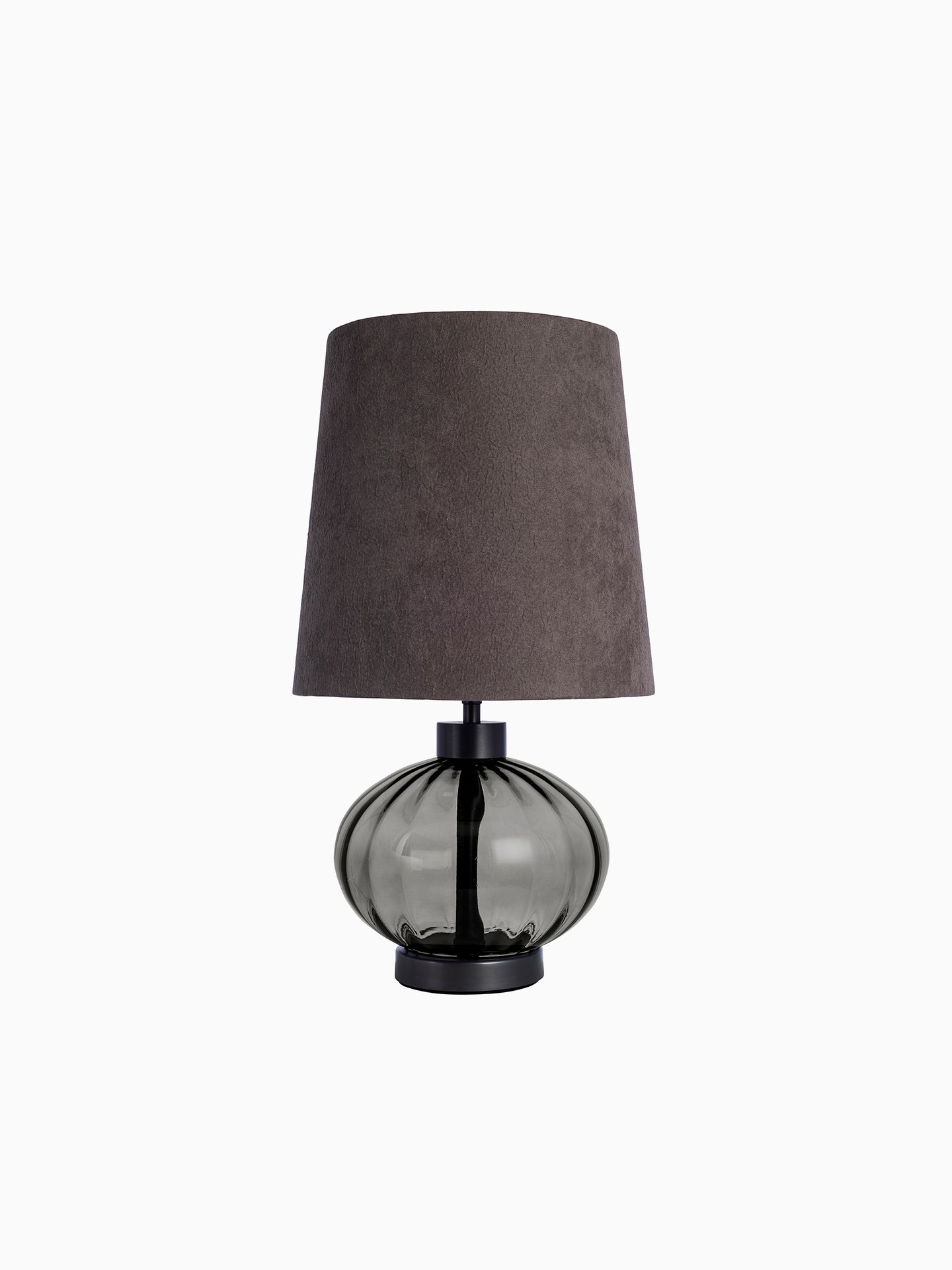 Our Pedra table lamp is perfectly petite. Beautifully fluted glass in a small dumpling shape is paired with simple metalwork in a complementary finish.
