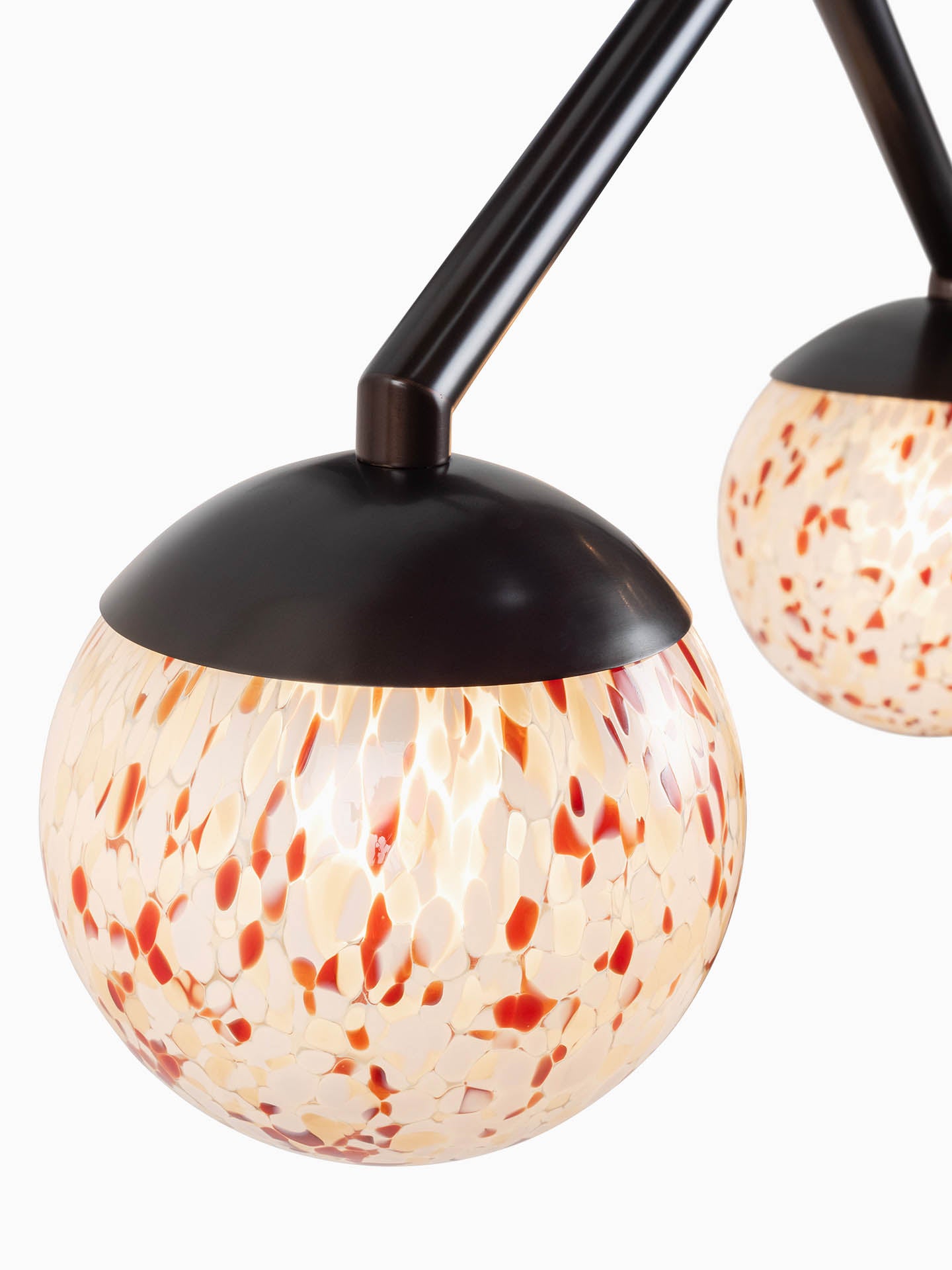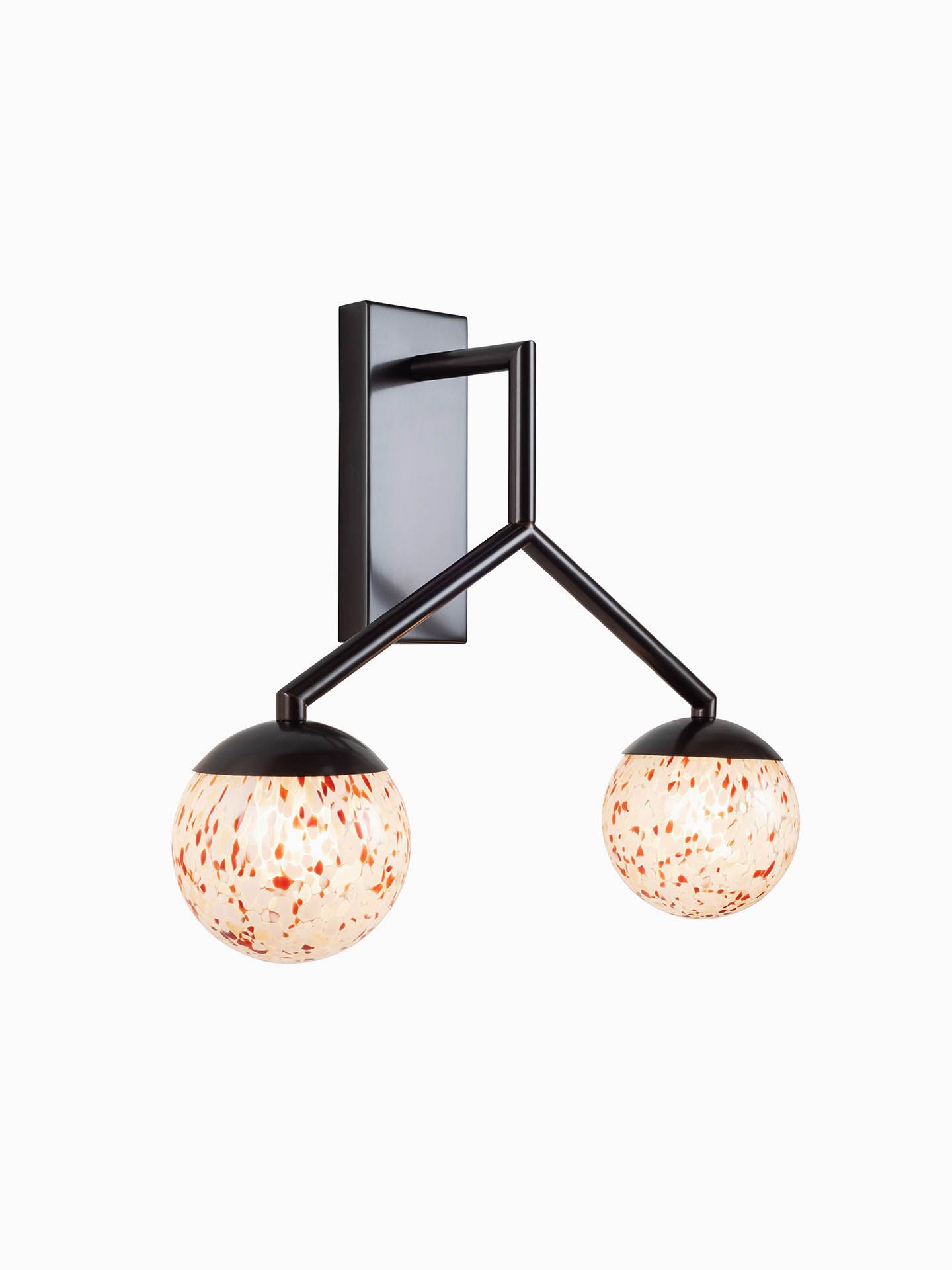 Elevate any space with the Silas Double wall light. The glass shades feature small speckles of molten glass in copper and neutral tones. When viewed closely, you can see the individual grains of the pattern, but from a distance the speckles merge to create a completely different design. This is one of the great charms of Silas.