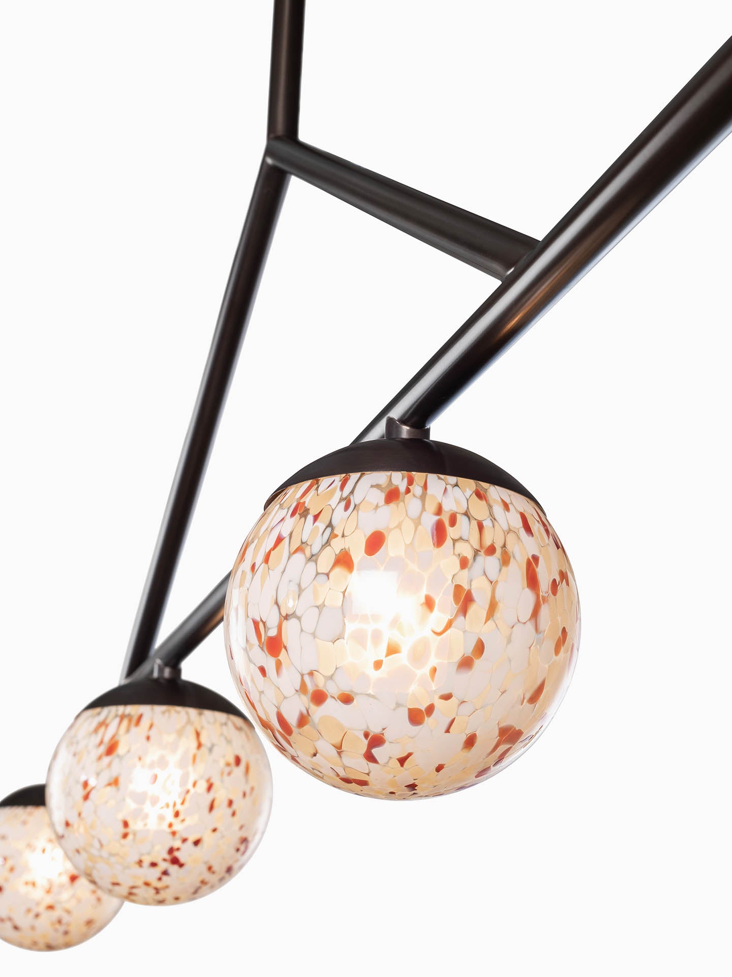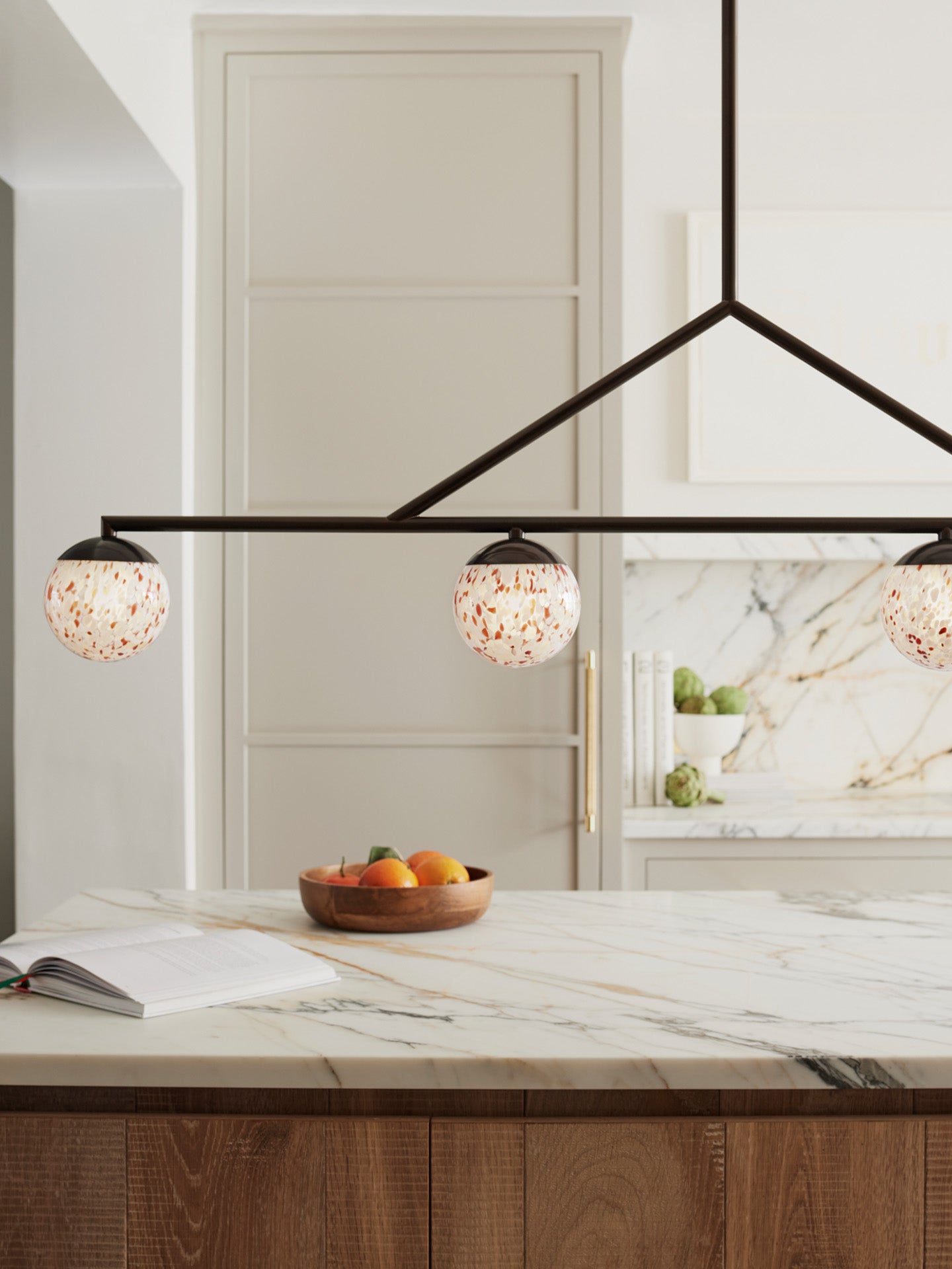 The Silas pendants look beautiful. Featuring a unique glass finish with speckles of red coffee-like molten 'frits' that come together to add a special character that is unique. This sophisticated format, which looks beautiful both unlit and lit, creates a warm and cosy atmosphere that's perfect for a dining room or above a kitchen island.
