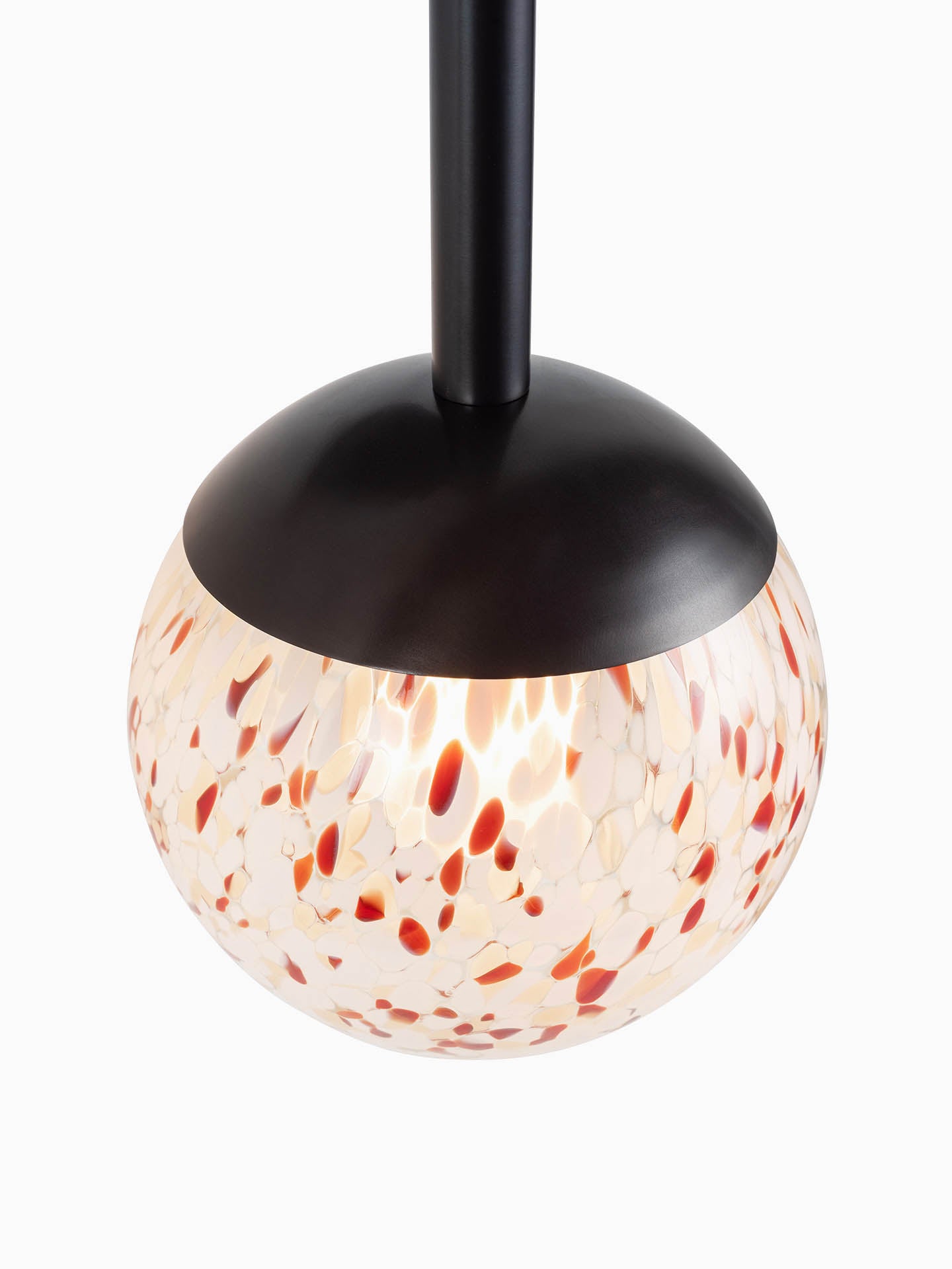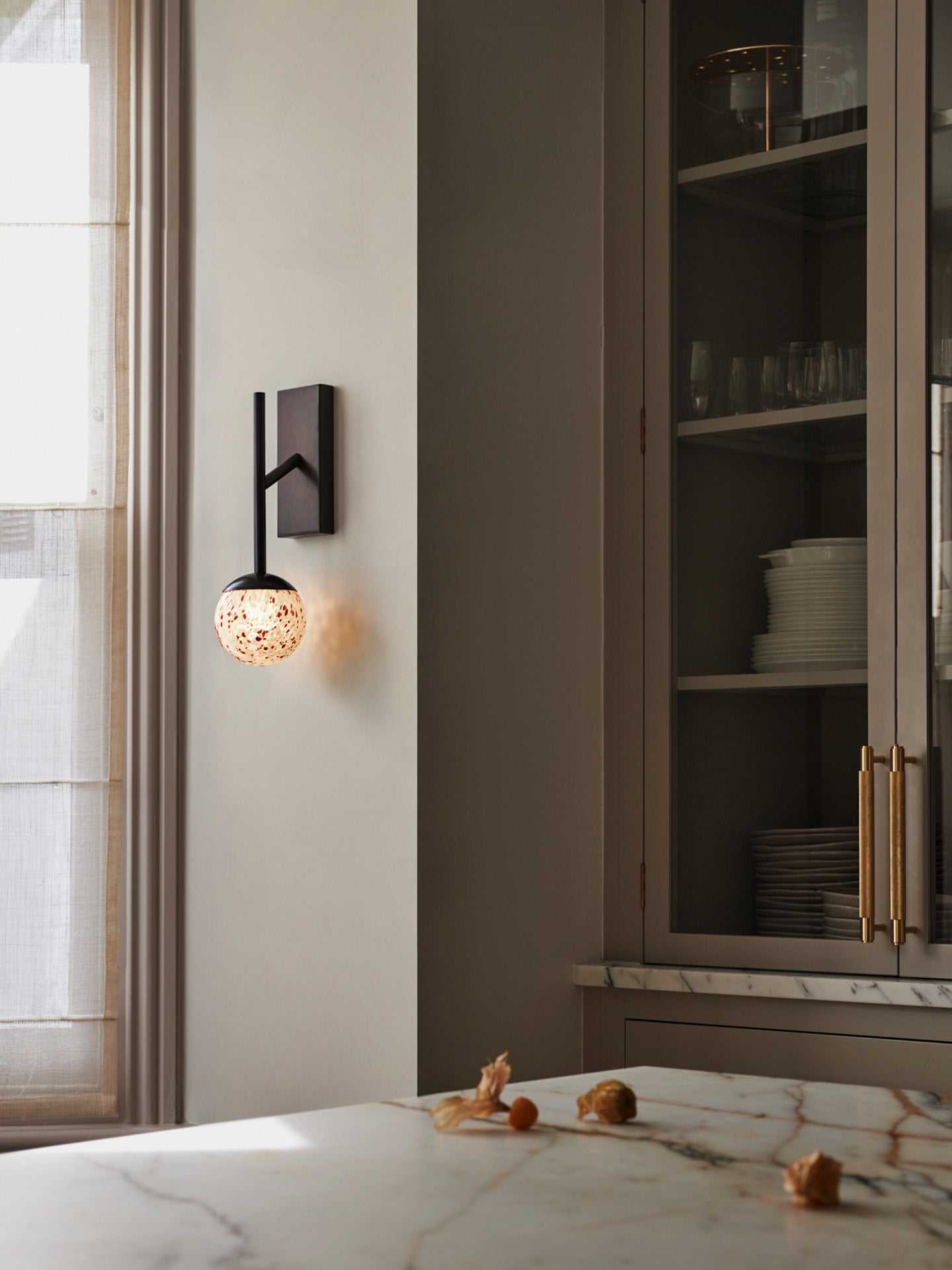 Elevate any space with the Silas Single wall light. The glass shades feature small speckles of molten glass in copper and neutral tones. When viewed closely, you can see the individual grains of the pattern, but from a distance the speckles merge to create a completely different design. This is one of the great charms of Silas.