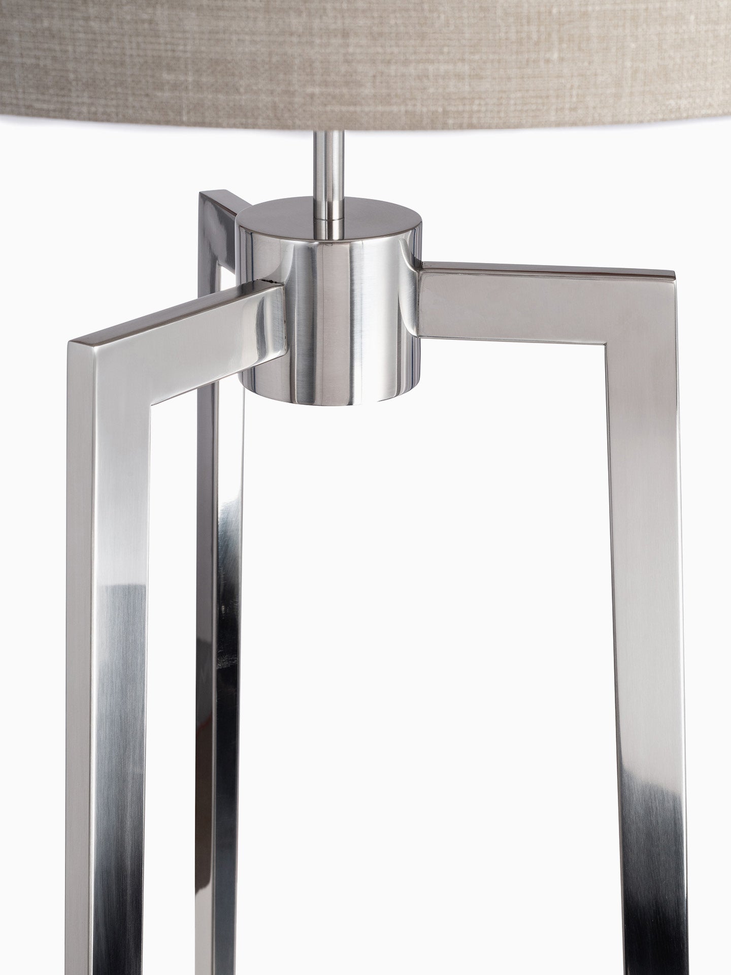 Finished in Polished Chrome, our Trianon floor lamp is a versatile design paired with a simple flat drum lampshade. The popular tripod form complements a wide range of interior schemes and styles.