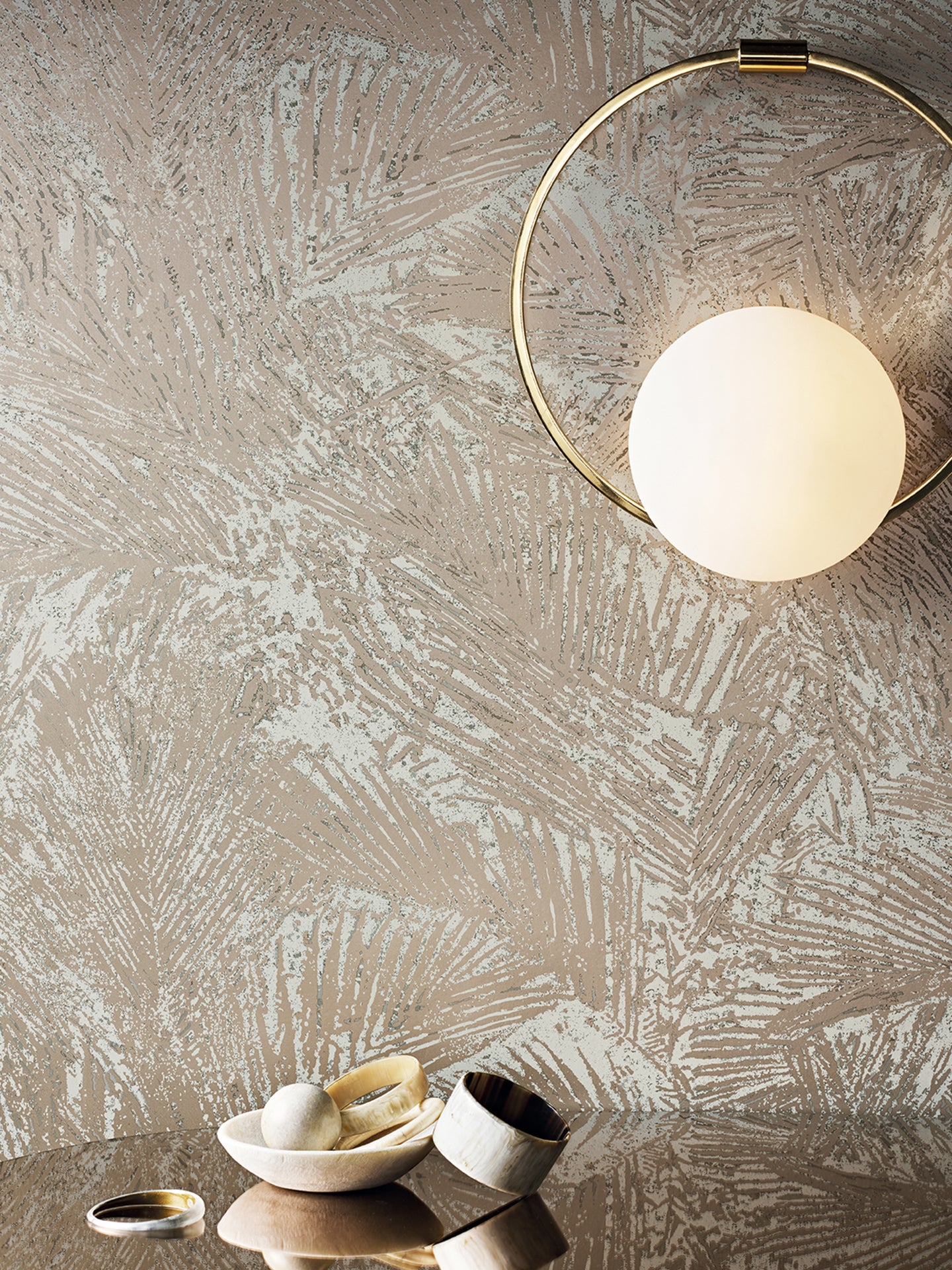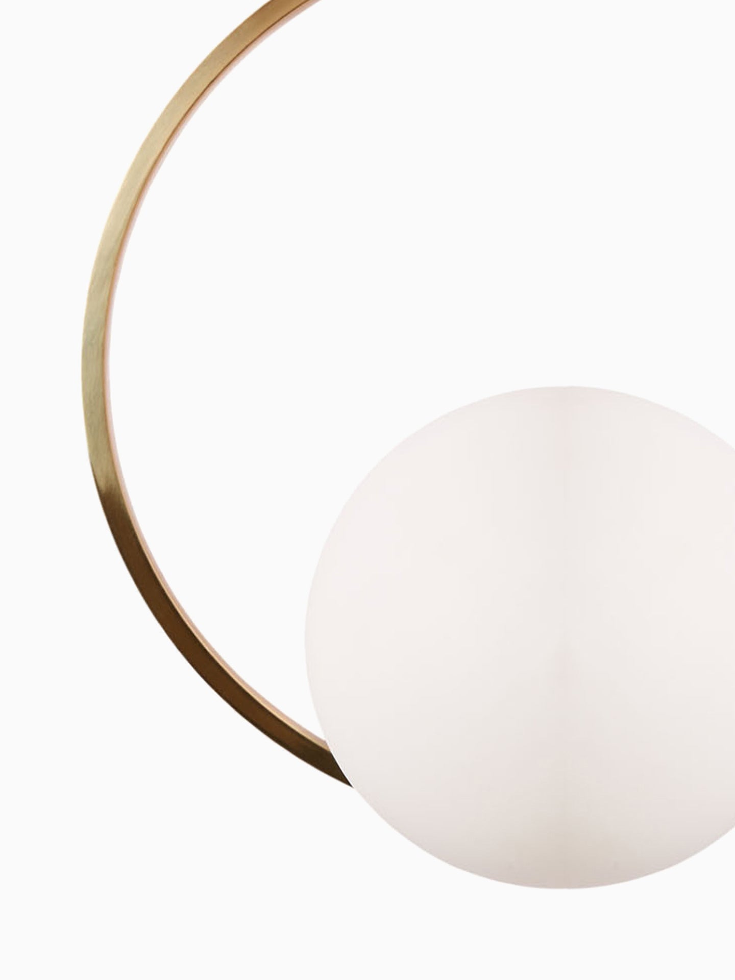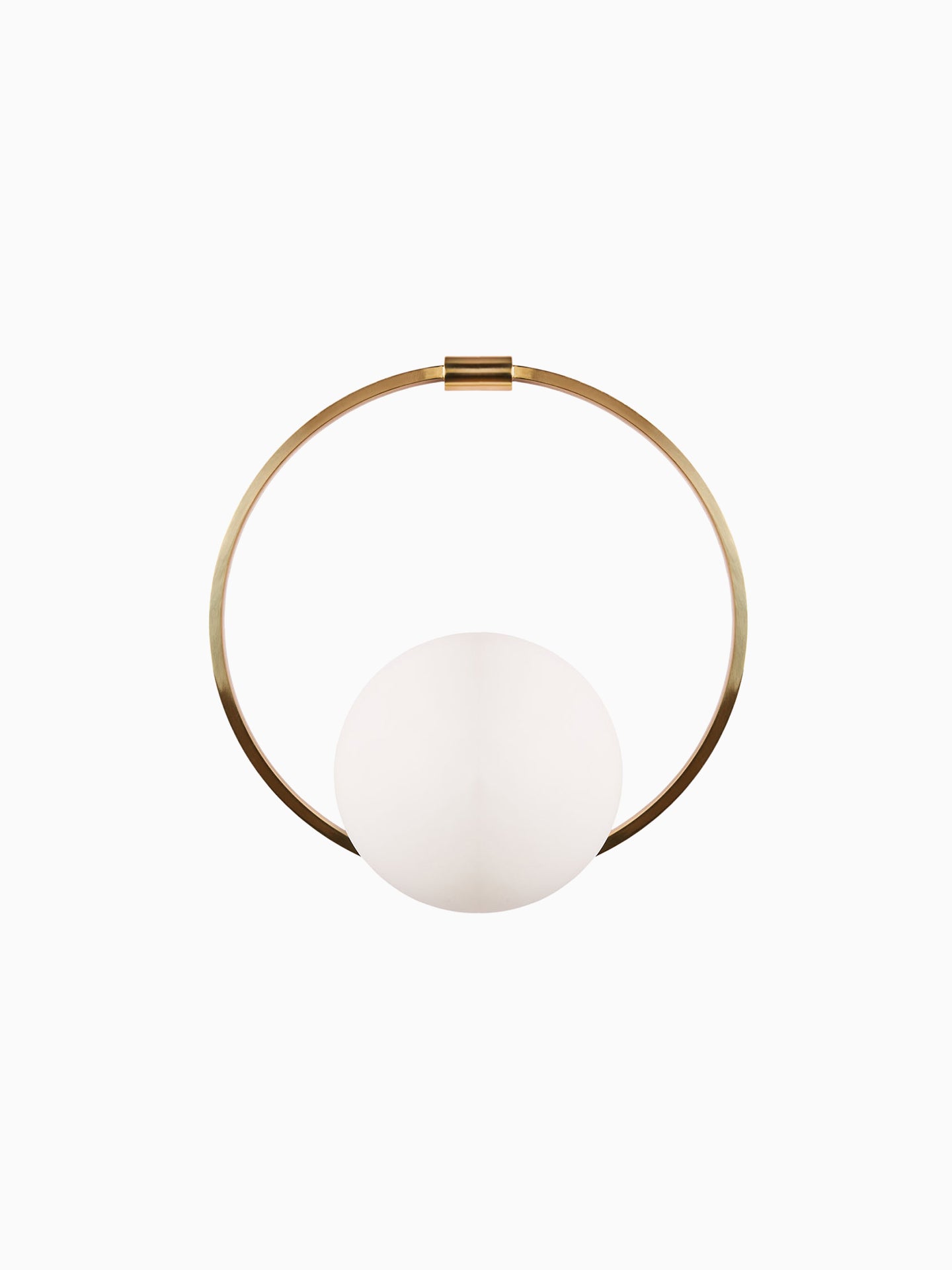 Inspired by the use of pearls in iconic mid century fashion, the Veil wall light features an opal glass hemisphere, symmetrically framed within a contemporary circular satin brass metal ring.